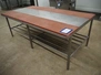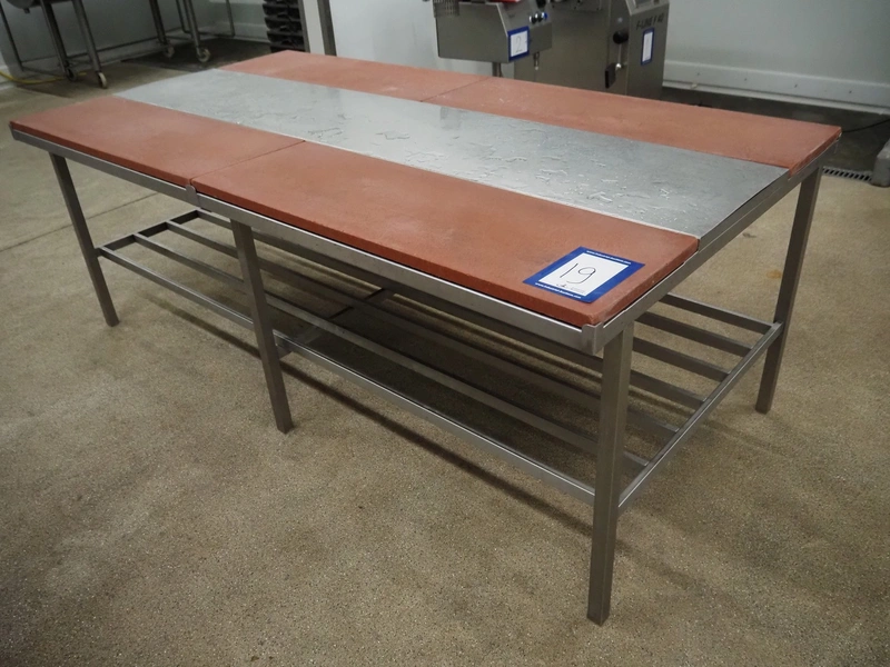 S/s table with plastic top, dimensions: 2480 mm x 1310 mm x 930 mm.