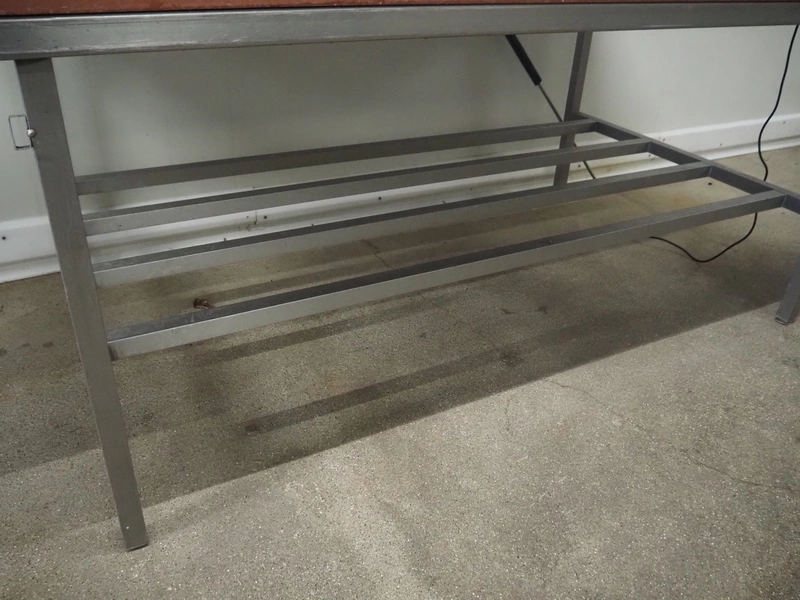 S/s table with plastic top, dimensions: 2000 mm x 1200 mm x 940 mm.