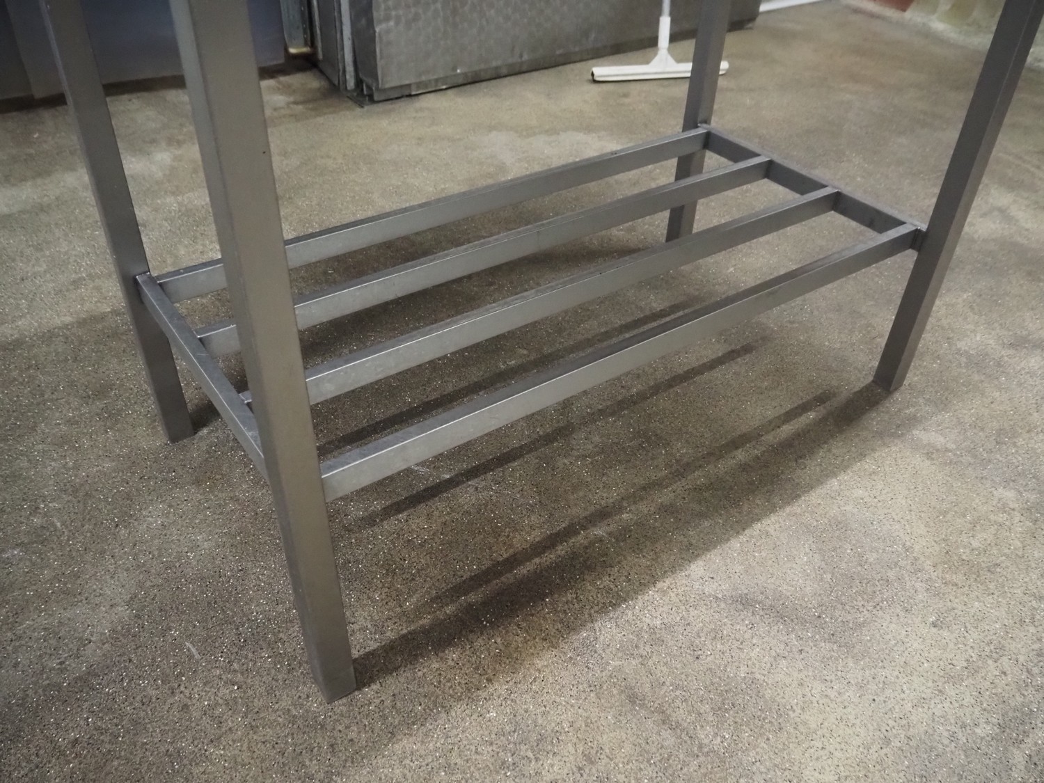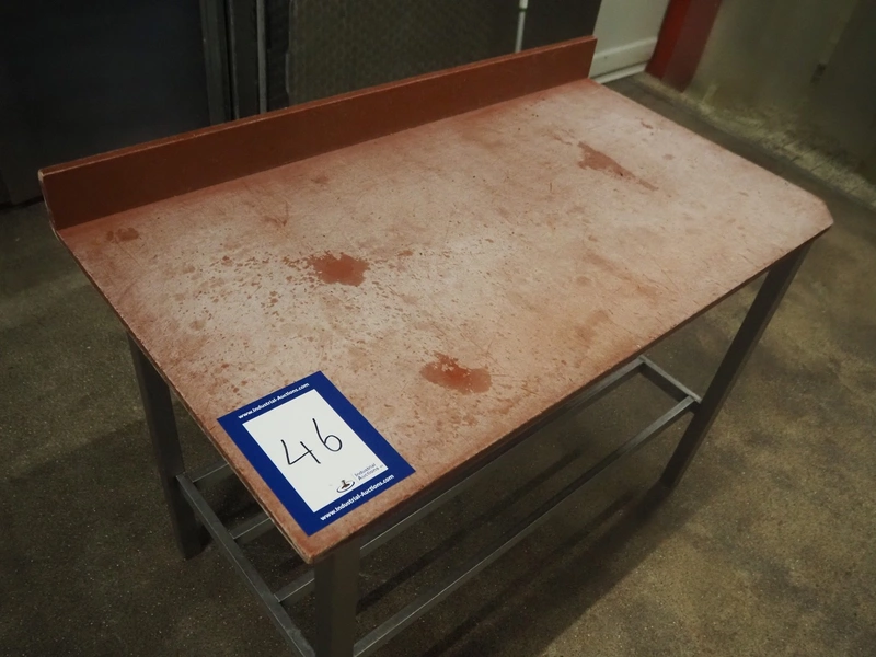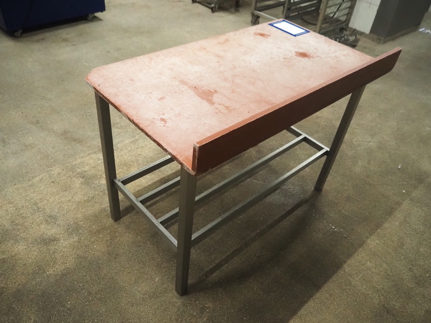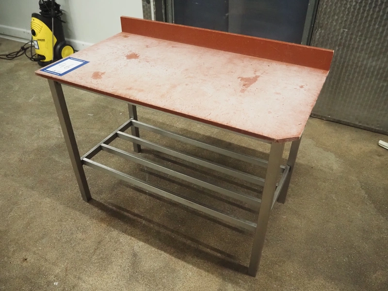 S/s table with plastic top, dimensions: 1250 mm x 700 mm x 900 mm.