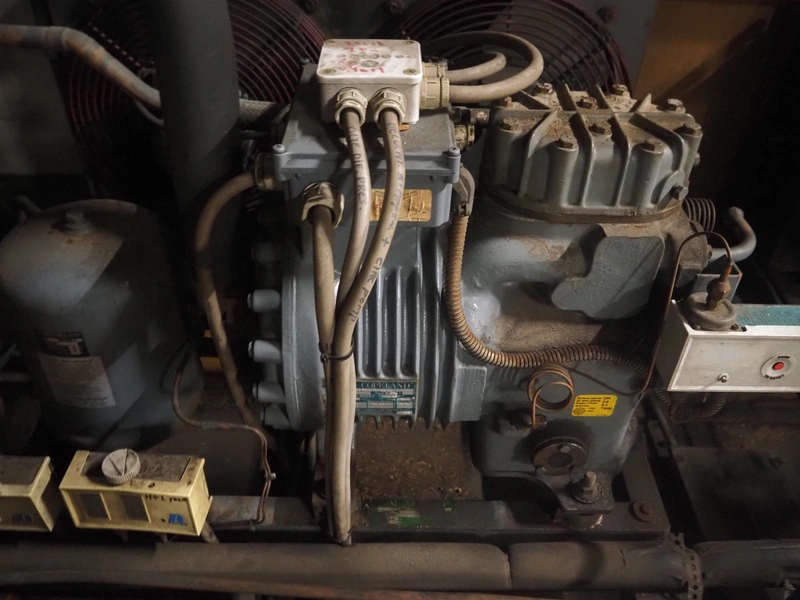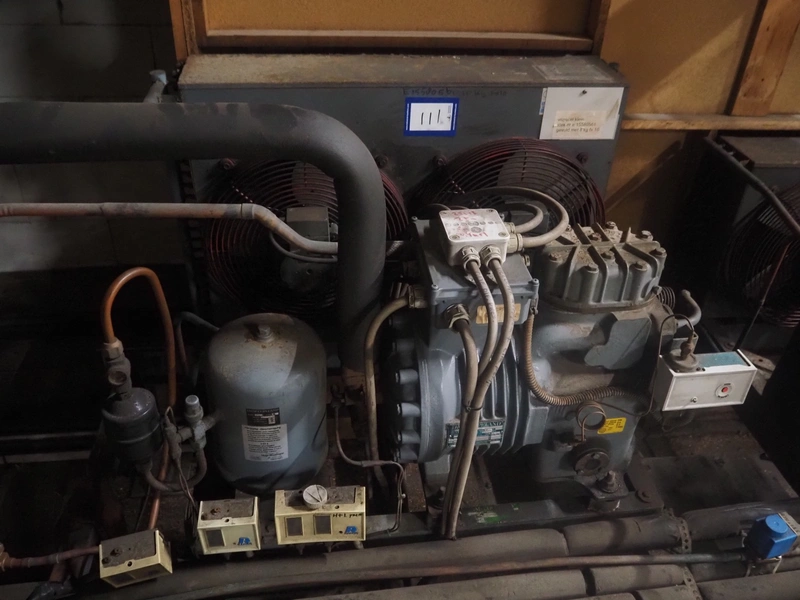 DMW Copeland cooling compressor, type: DMRH-500L-EWM/000, factory number: 385520, year of construction: 1988, 380-420 V, 3 Ph, 50 Hz, 13.7 A, 20.5 bar, 26.8 m³/h, refrigerant: FX10 / 8 kg, dimensions: 900 mm x 700 mm x 700 mm.