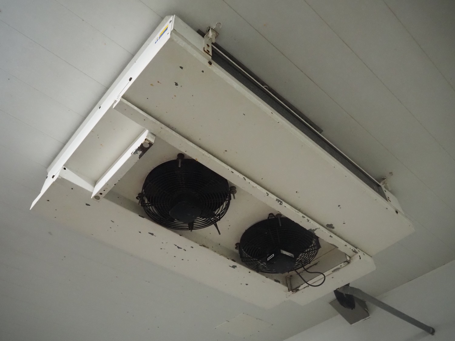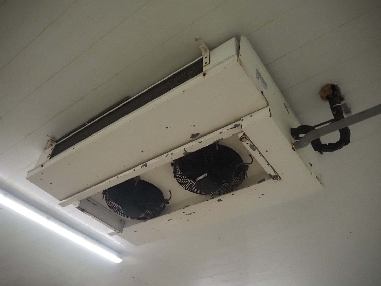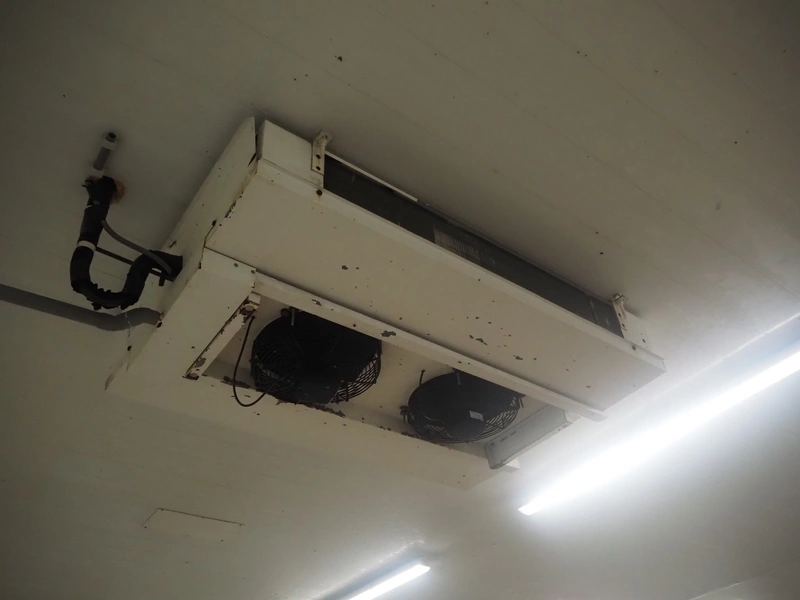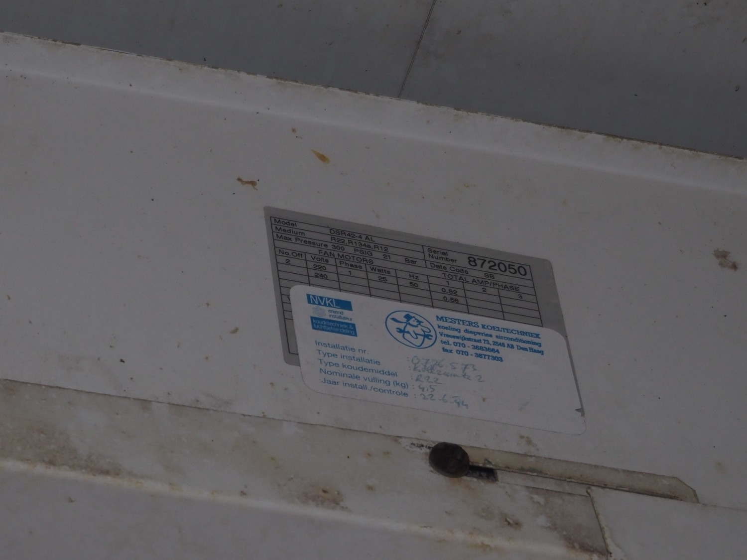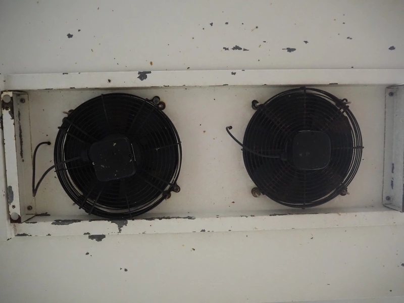 GEA Searle evaporator, 2 fans, model: DSR42-4 AL, serial number: 872050, 220/240 V, 1 Ph, 50 Hz, 0.52/0.56 A, 25 W, maximum pressure: 300 PSIG, dimensions: 1000 mm x 700 mm x 350 mm.