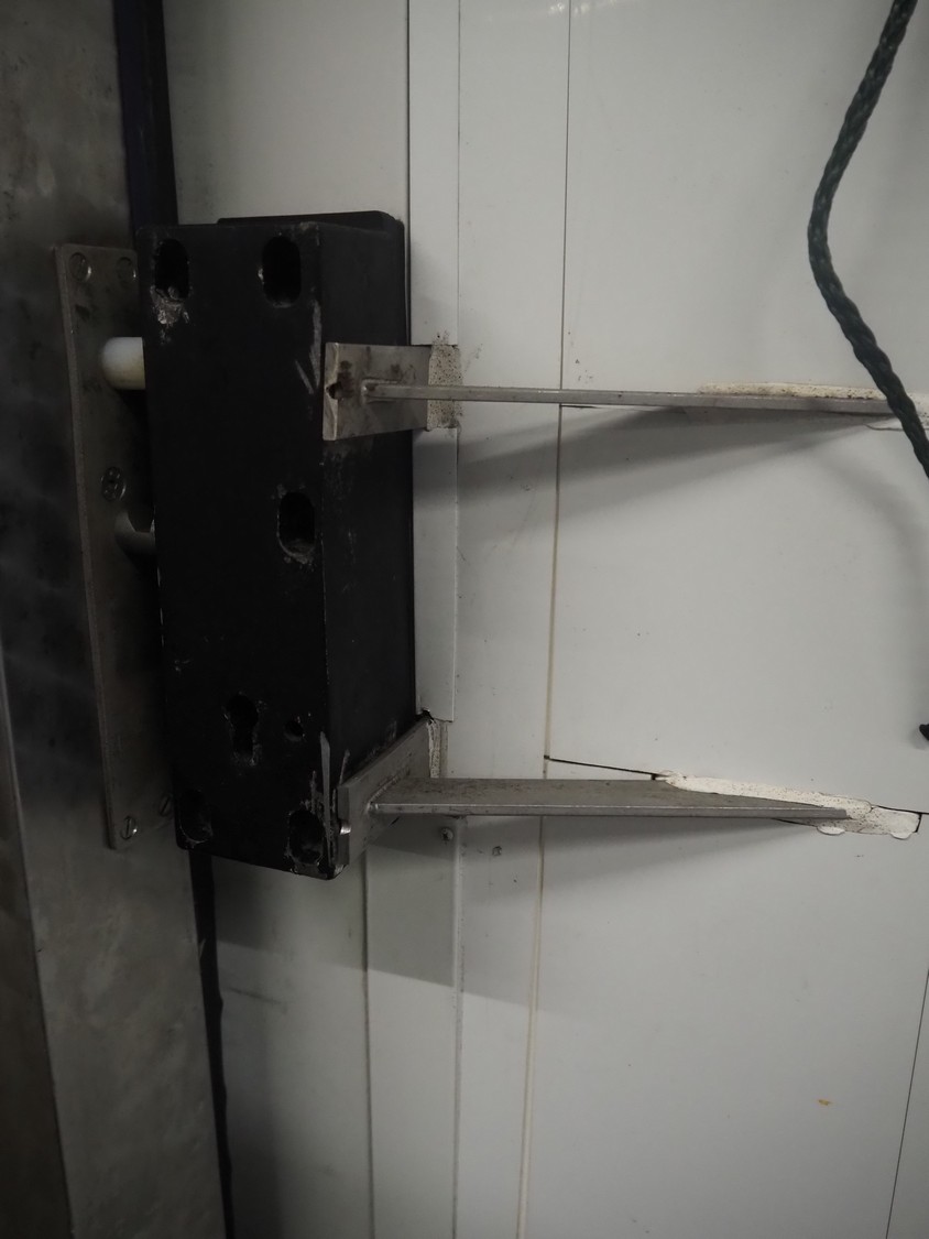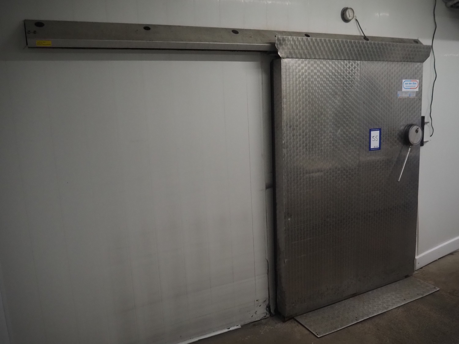 S/s refrigeration sliding door with rails, dimensions door: 1600 mm x 2100 mm x 170 mm, length rails: 3300 mm.