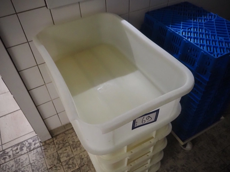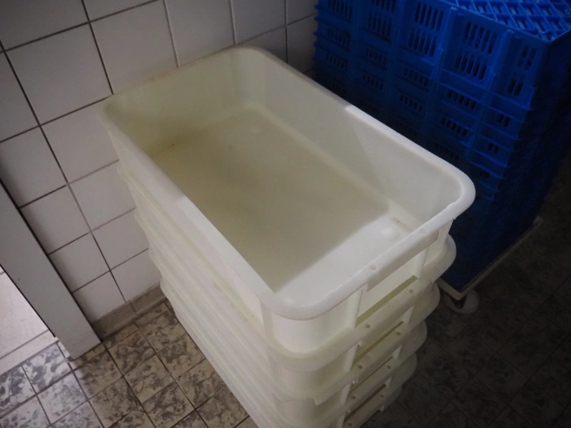 6 plastic crates, dimensions: (6x) 450 mm x 700 mm x 170 mm.