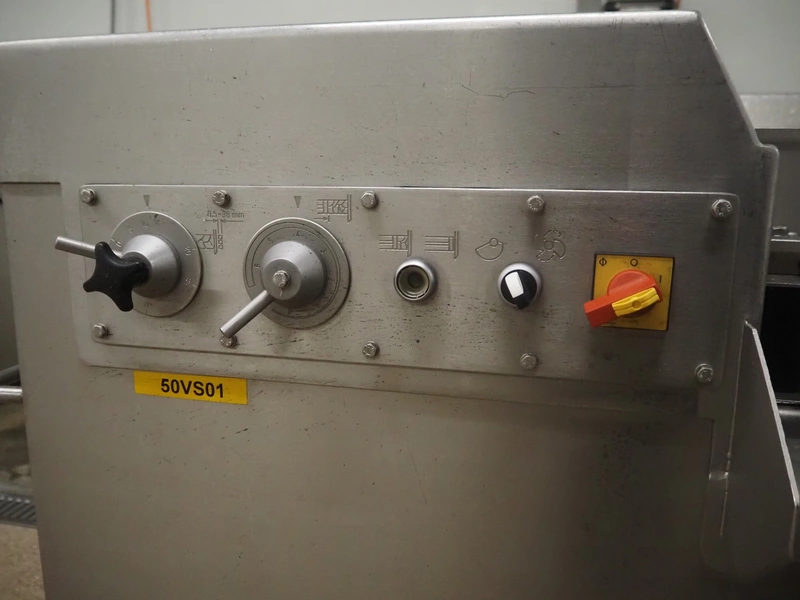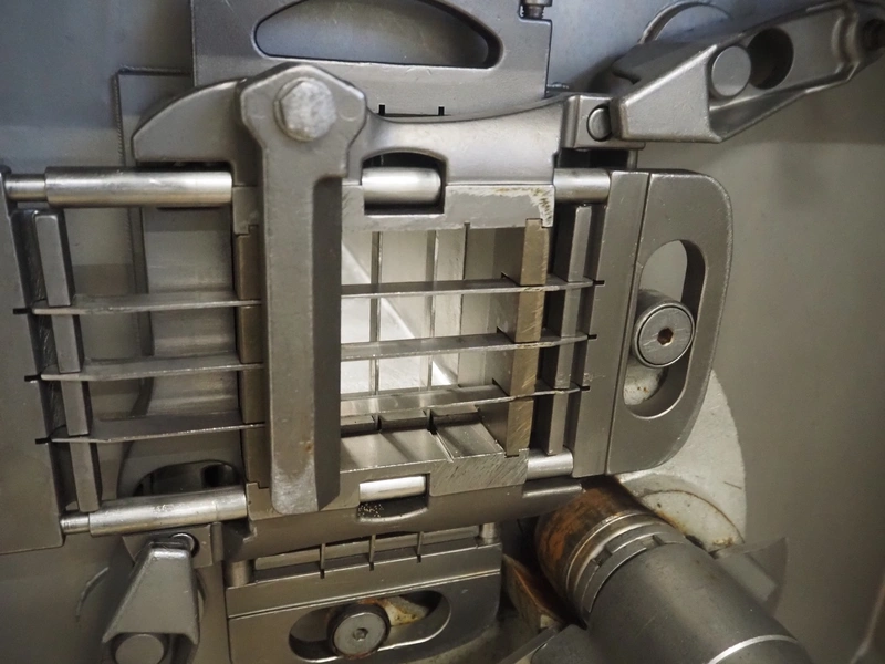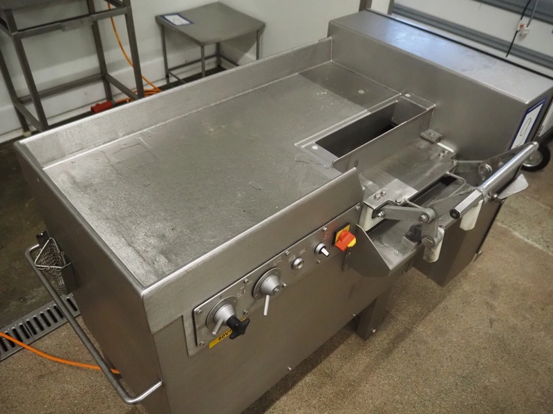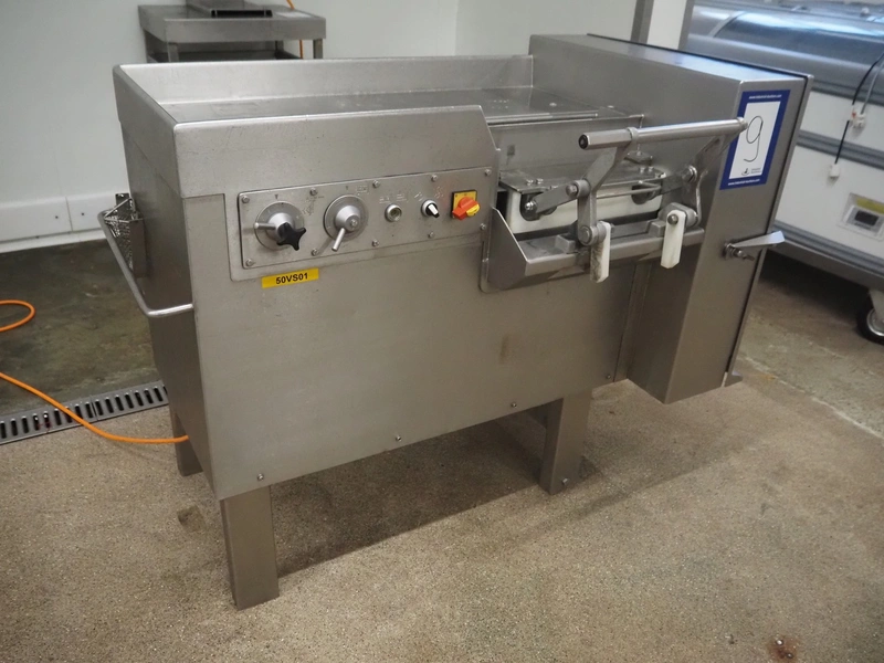 Treif dicer, type: 152, number: 0438, 380 V, 50 Hz, 16 A, dimensions chamber: 85 mm x 85 mm x 400 mm, total dimensions: 1350 mm x 800 mm x 1050 mm. Including extra grids and knives.