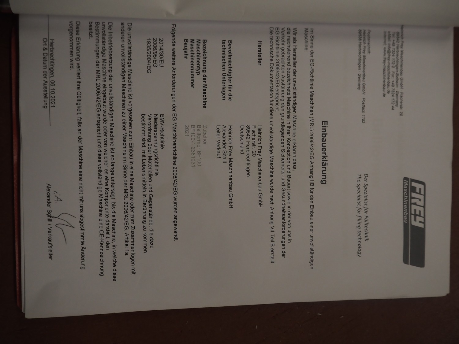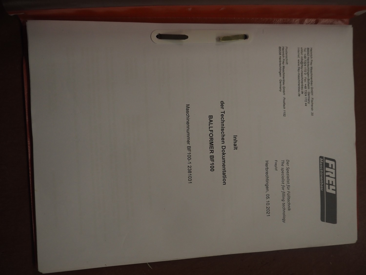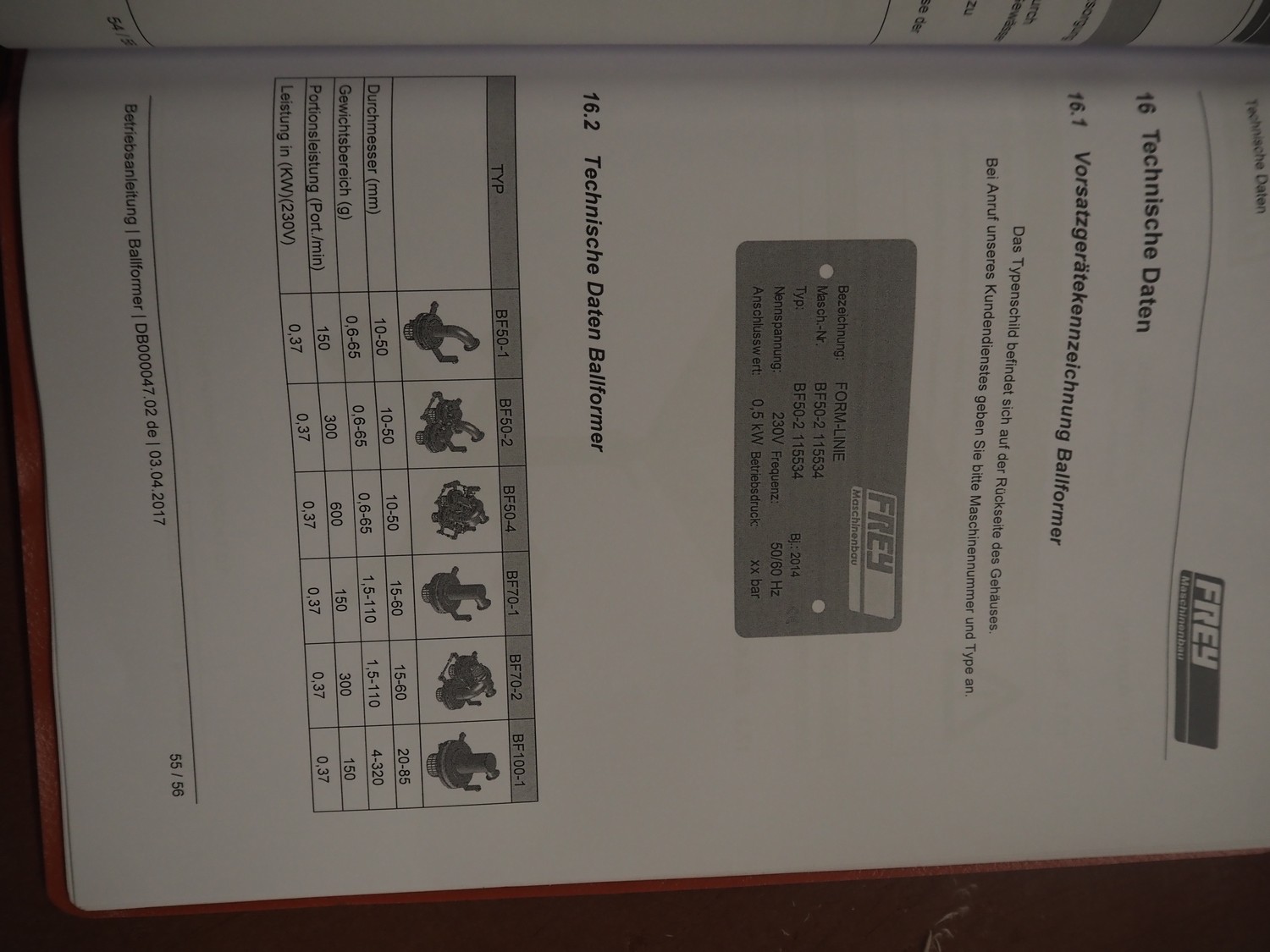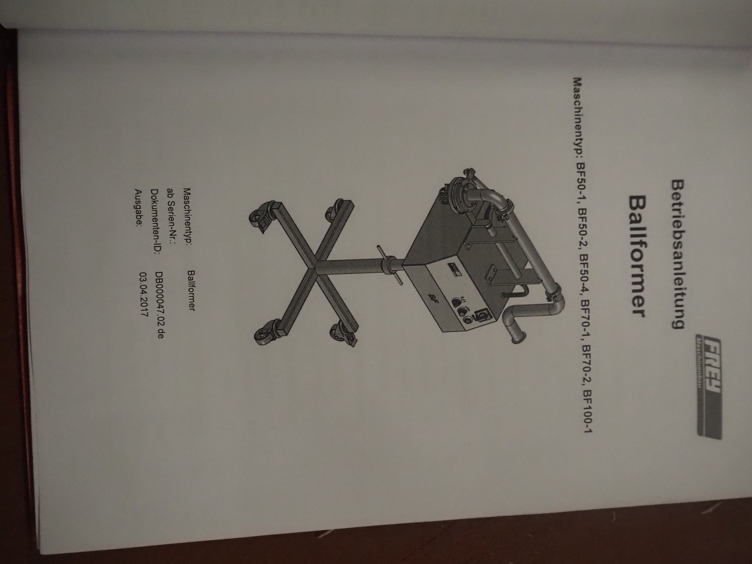Frey Maschinenbau mobile meat ball forming machine / diaphragm, type: BF100-1, machine number: BF100-1 2381031, year of construction: 2021, 230 V, 50/60 Hz, 0.5 kW, clearance: 20-85 mm, weight reach: 4-320 gram, capacity: 150 portions / minute, dimensions: 1100 mm x 600 mm x 1400 mm.