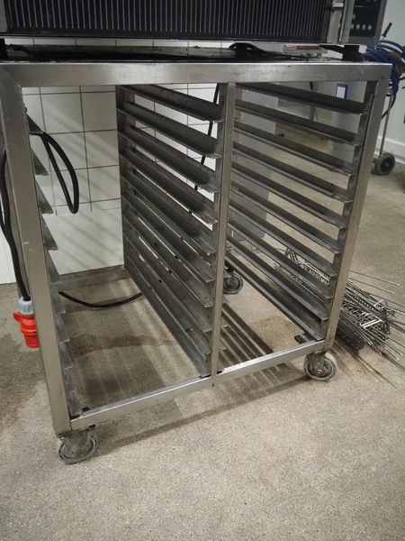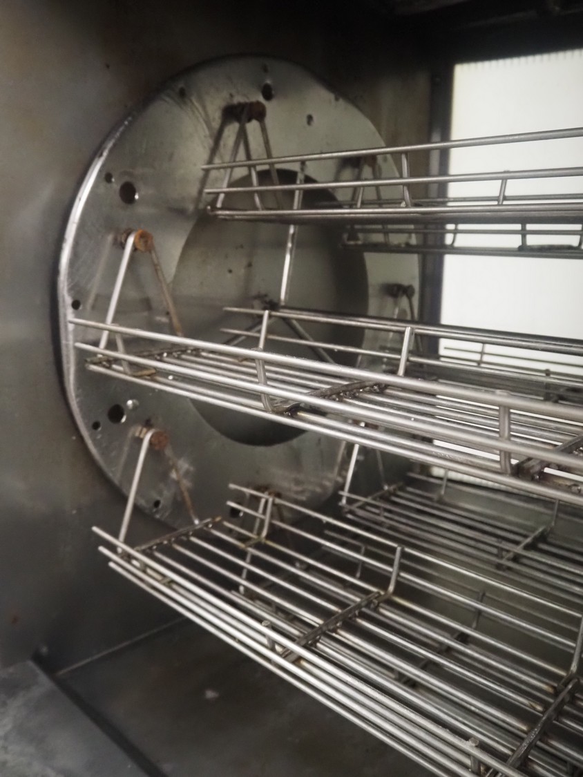 Fri-Jado mobile rotisserie grill, type: TG 330 E, serial number: 100001777, year of construction: 1998, dimensions: 960 mm x 800 mm x 2060 mm. Including extra baskets.