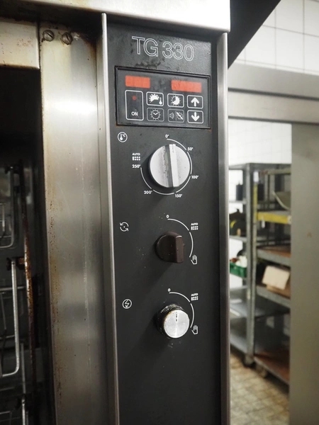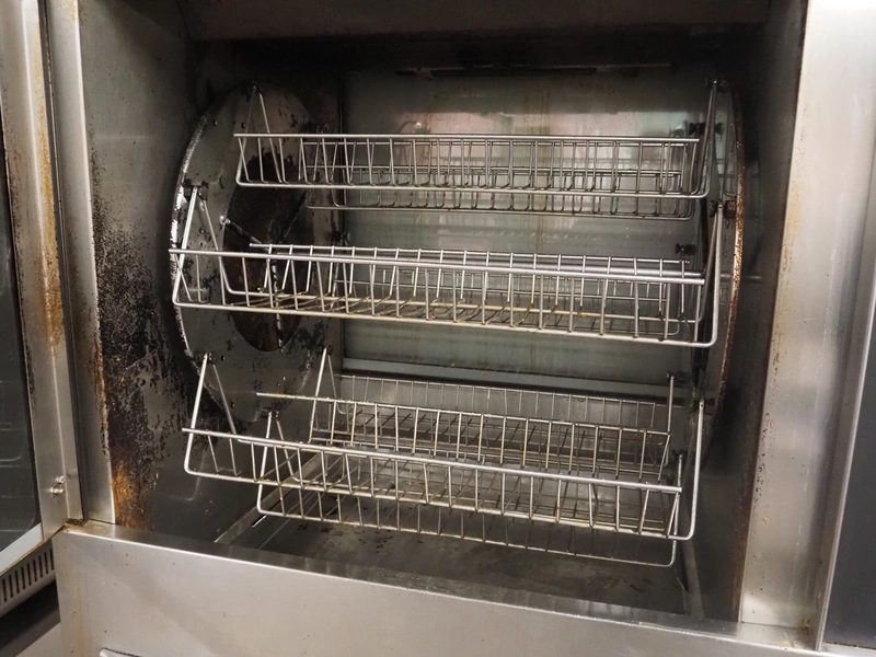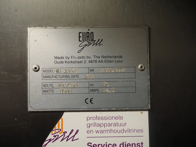 Euro-Grill / Fri-Jado mobile rotisserie grill, model: TG 330-E, number: 100001777, year of construction: 1998, 400/230 V, 50 Hz, 14.5 A, 9500 W, dimensions: 1000 mm x 800 mm x 2000 mm.
