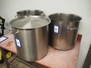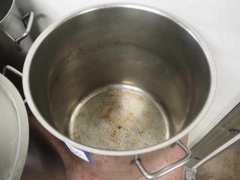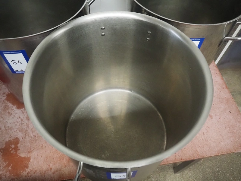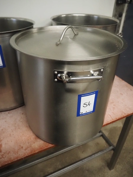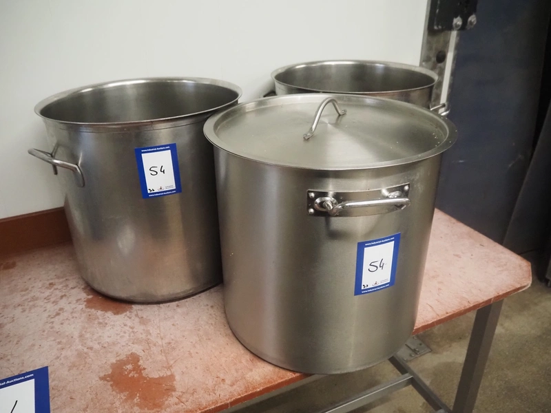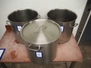 3 s/s pans with 1 lid, dimensions: (3x) Ø 430 mm x 400 mm.