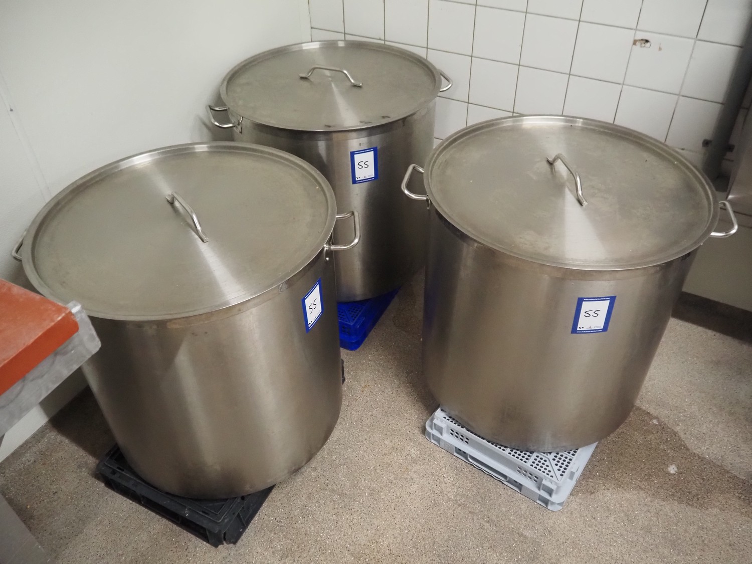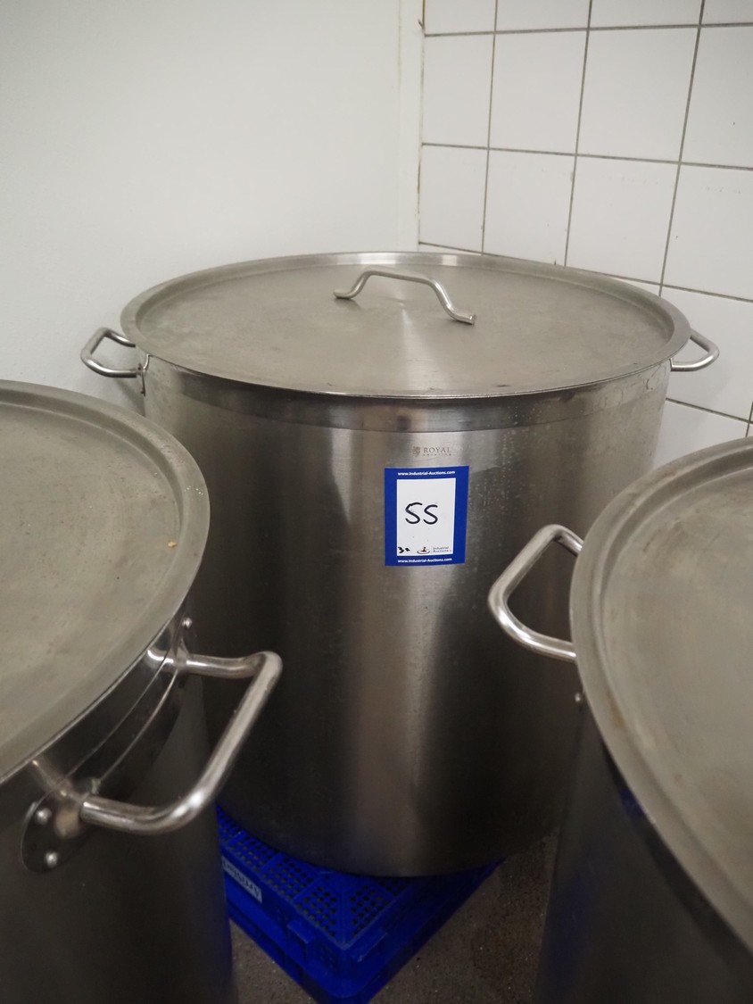 3 Royal Catering s/s pans with lids, dimensions: (3x) Ø 640 mm x 600 mm.
