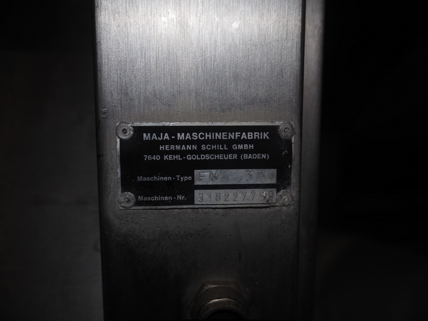 Maja-Maschinenfabrik mobile skinning machine, type: EMA 350, machine number: 318227759, working width: 300 mm, total dimensions: 650 mm x 700 mm x 1000 mm.