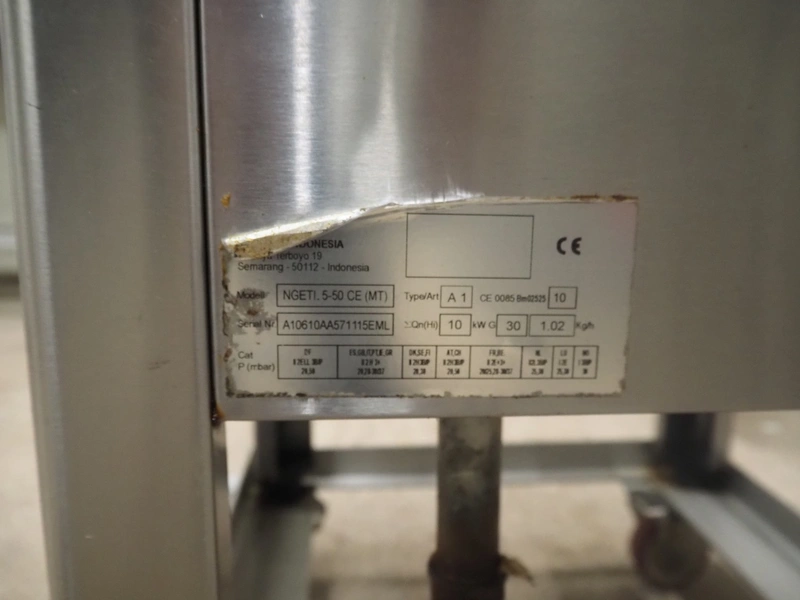 Navati mobile gas stove, model: NGETL 5-50 CE (MT), serial number: A10610AA571115EML, 10 kW, dimensions: 500 mm x 500 mm x 600 mm.