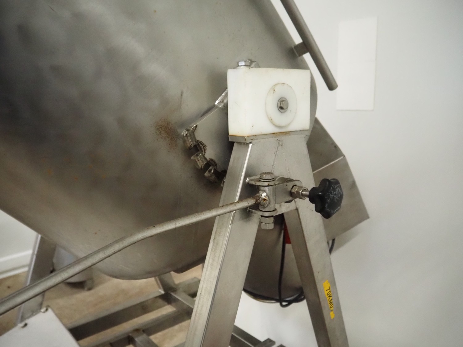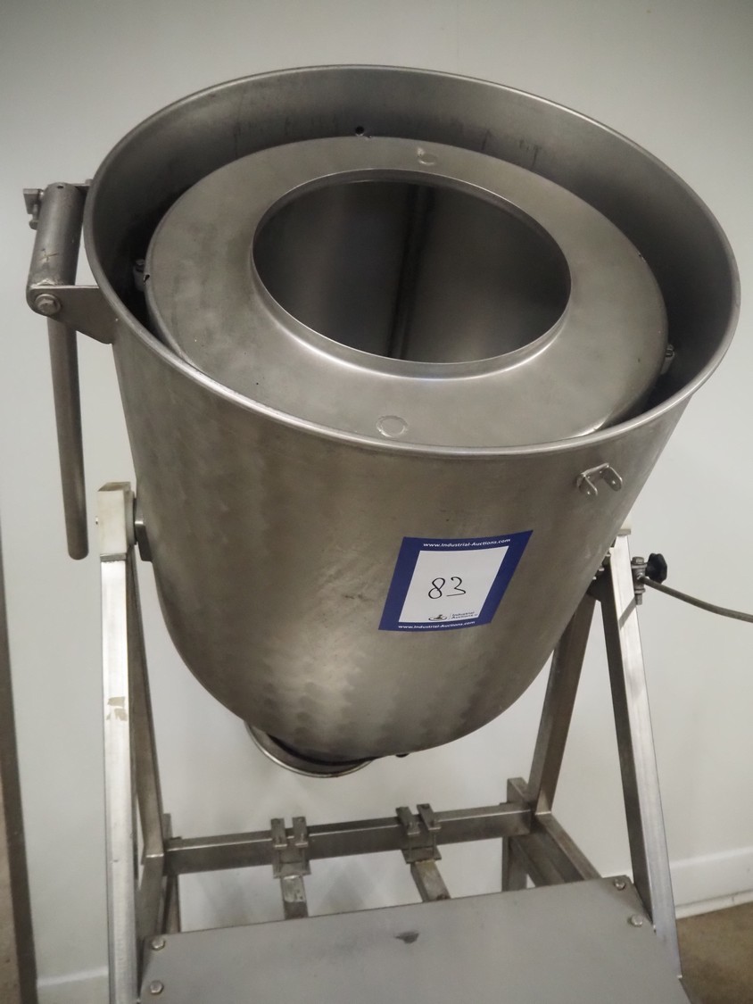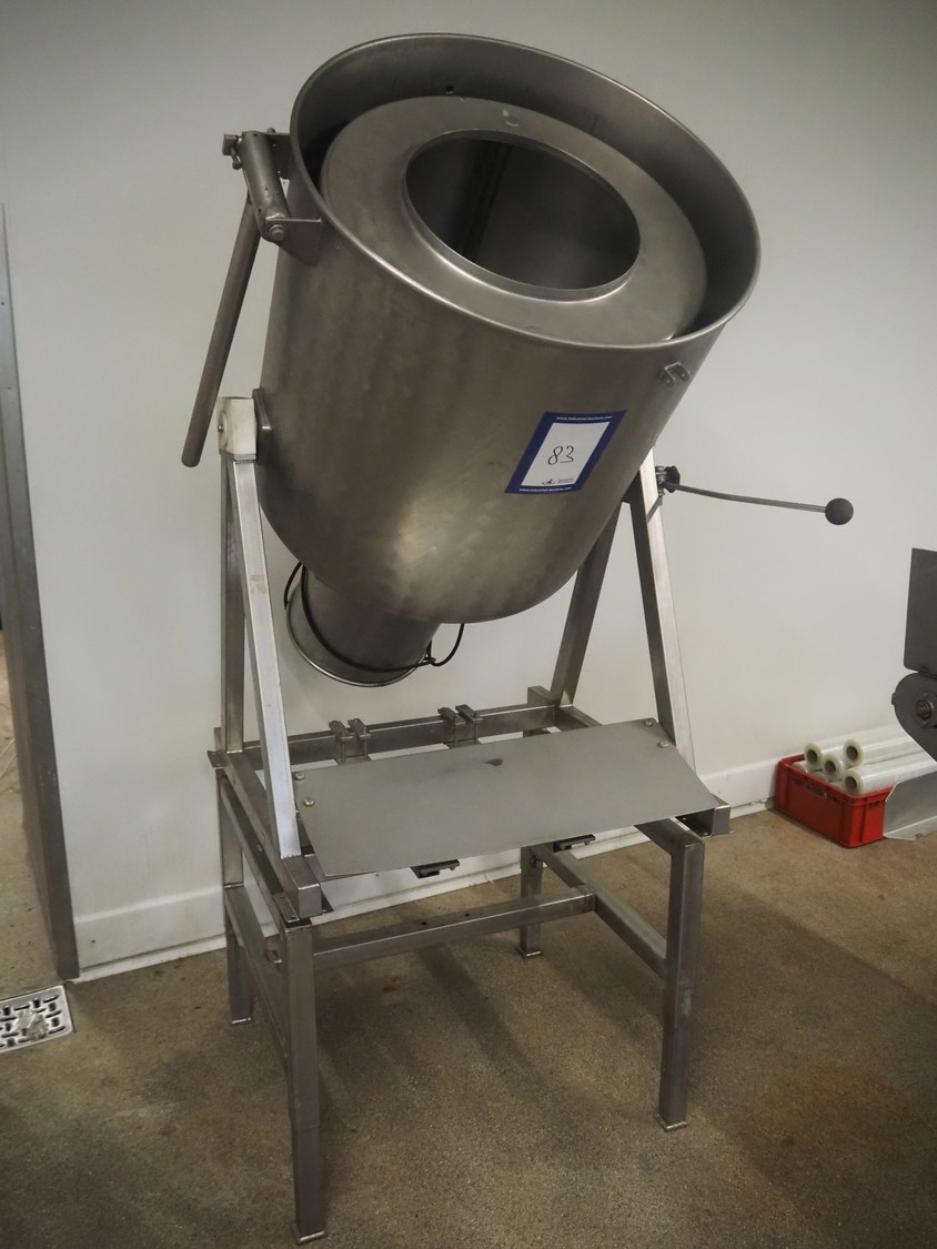 S/s tumbler, dimensions drum: Ø 600 mm x 650 mm, volume: 60 liter, total dimensions: 1100 mm x 1300 mm x 2300 mm. Without lid.