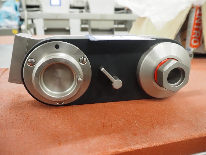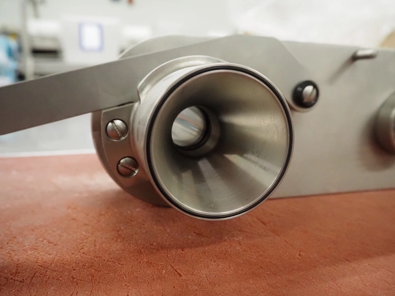 Frey Maschinenbau linking attachment for vacuum filling machine, dimensions: 400 mm x 200 mm x 150 mm. Including 2 filling pipes.