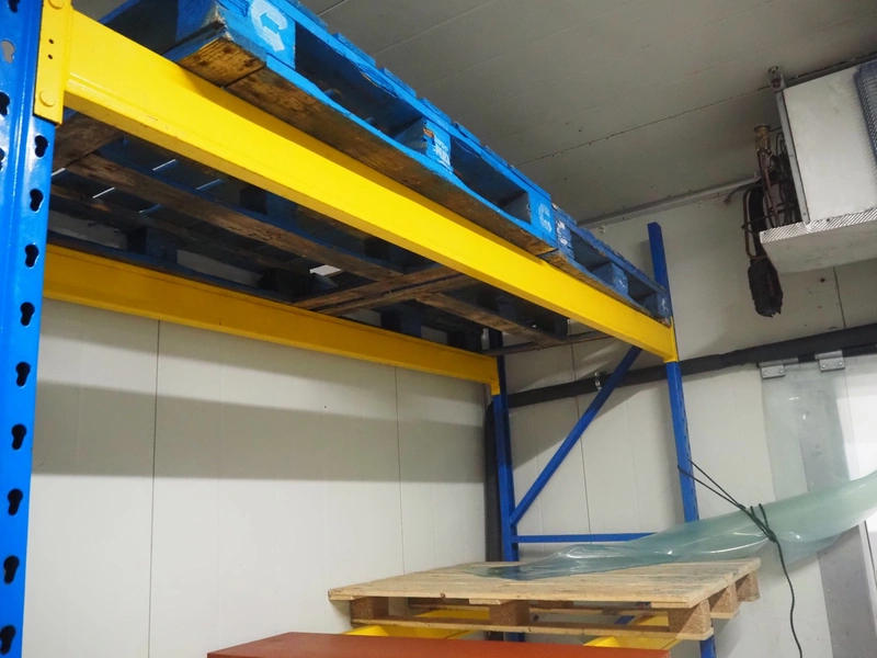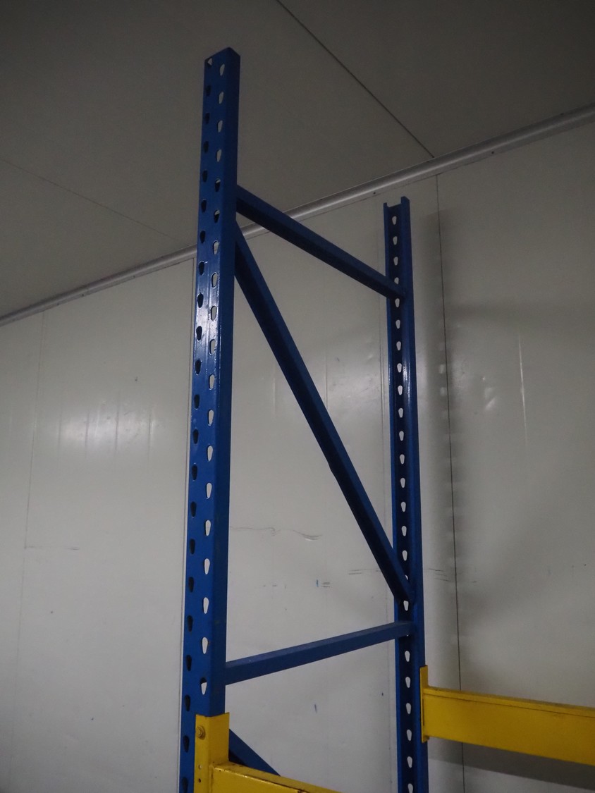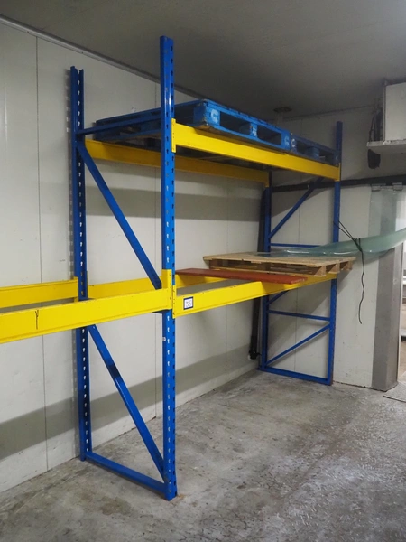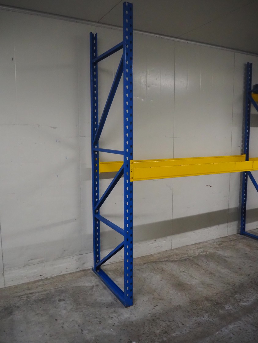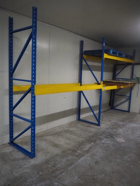 Steel pallet rack, consisting of: 3 uprights, dimensions uprights: 2850 mm x 870 mm and 6 beams, length beams: 2600 mm.