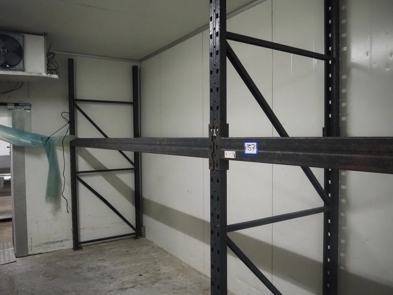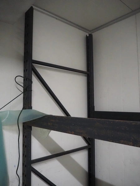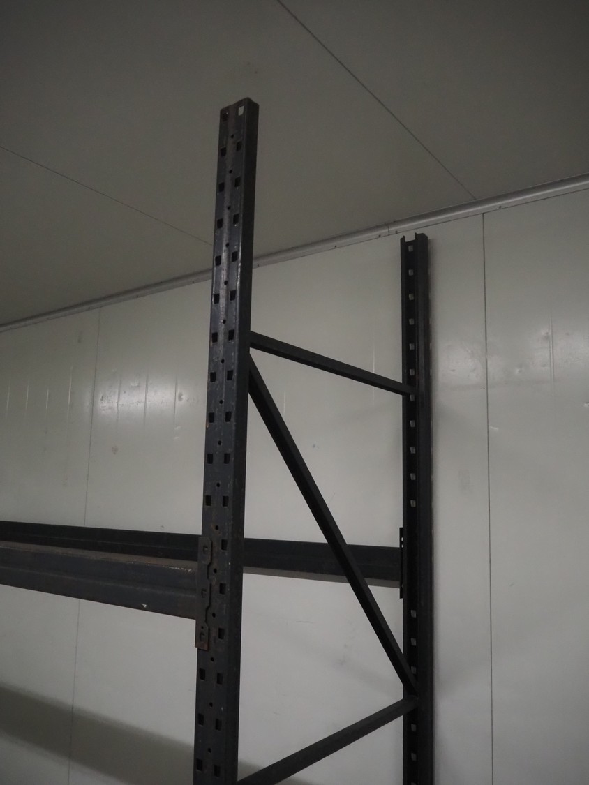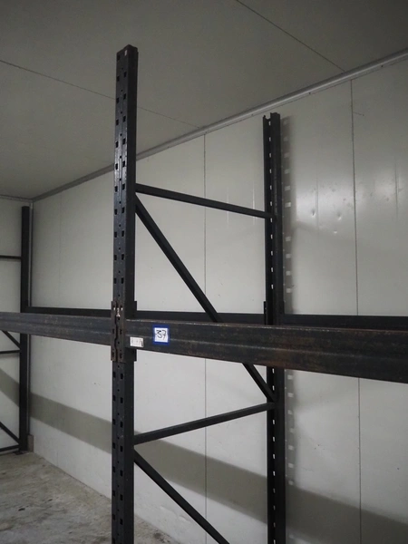 Steel pallet rack, consisting of: 3 uprights, dimensions uprights: 2900 mm x 1100 mm and 4 beams, length beams: 3600 mm.