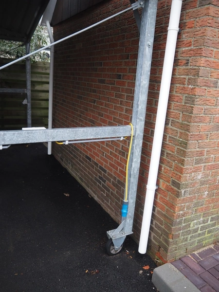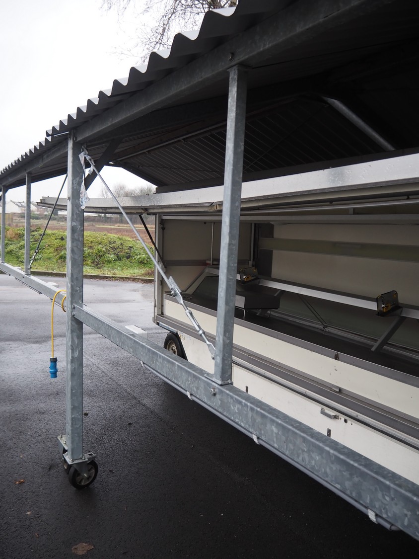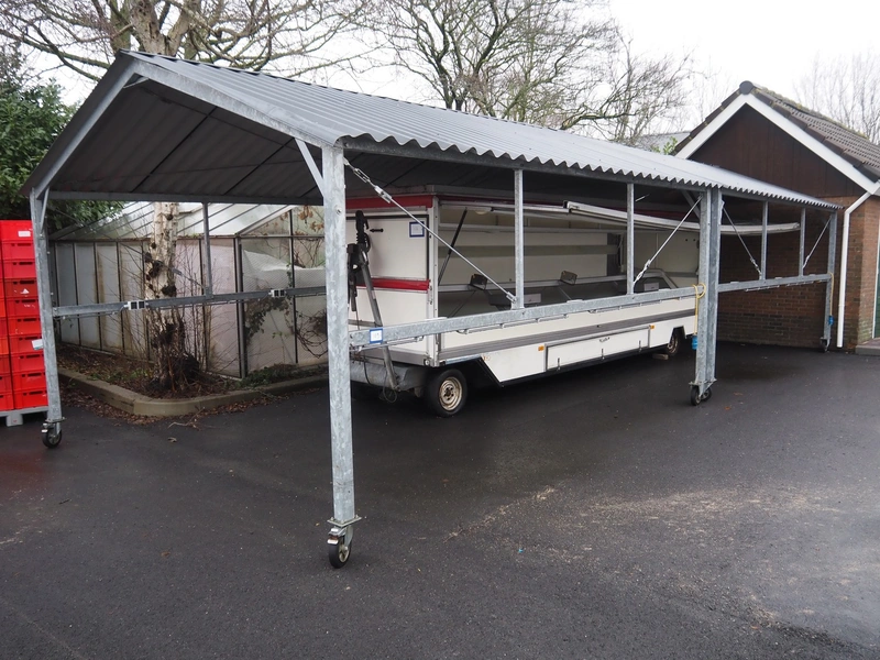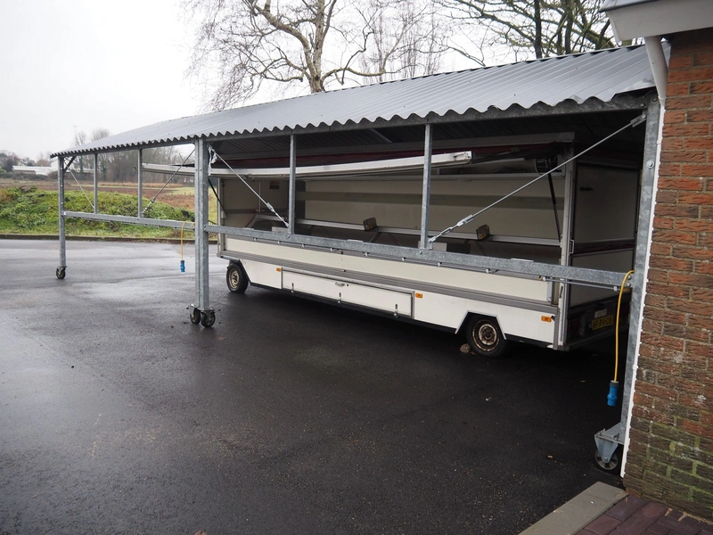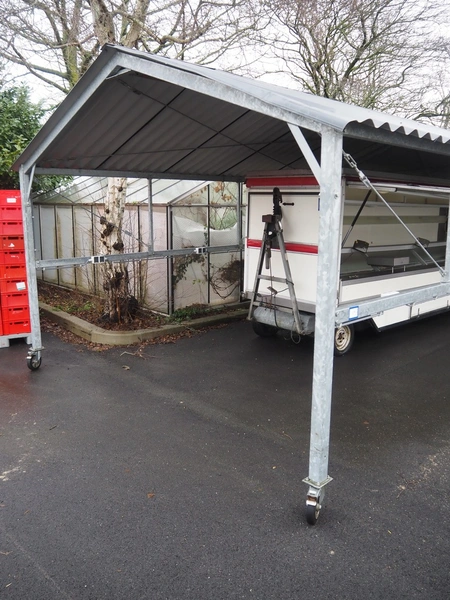 (2x) steel movable canopy with 6 power sockets (220 V), dimensions: (2x) 5000 mm x 4000 mm x 3100 mm.