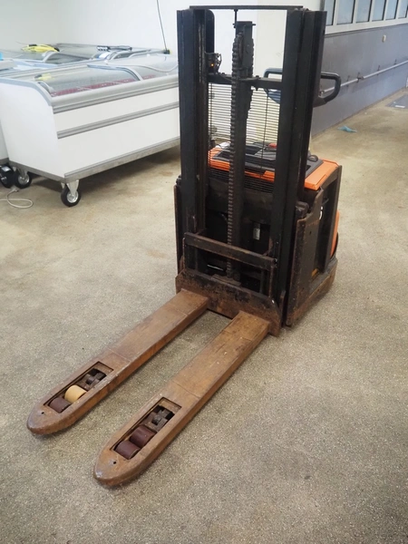 BT electrical pallet lifter, model: SWE200D, number: 6261630, year of construction: 2013, capacity: 2000 kg, 24 V, fork length: 1150 mm, total dimensions: 2100 mm x 800 mm x 1550 mm. Including Lever battery charger.