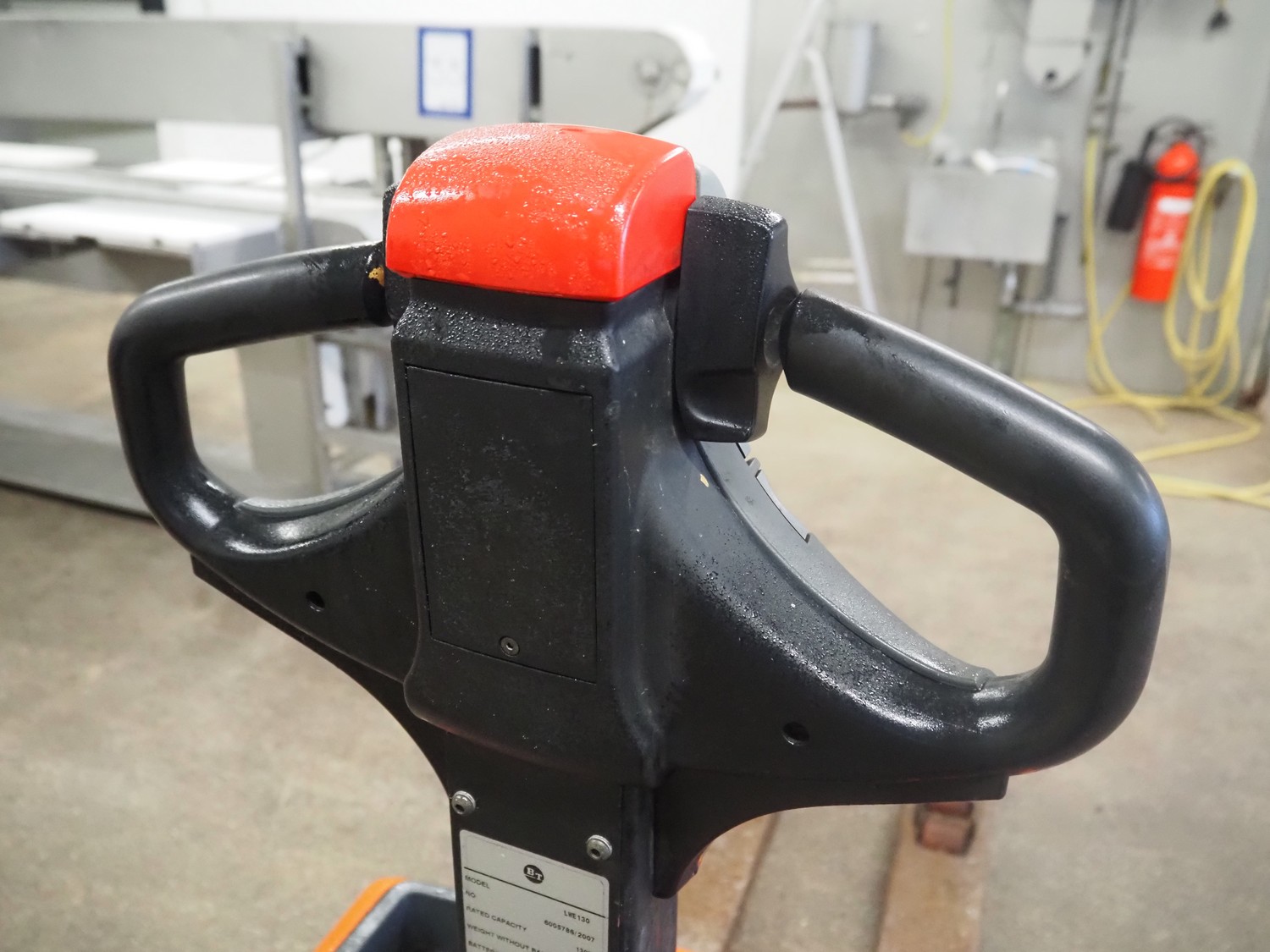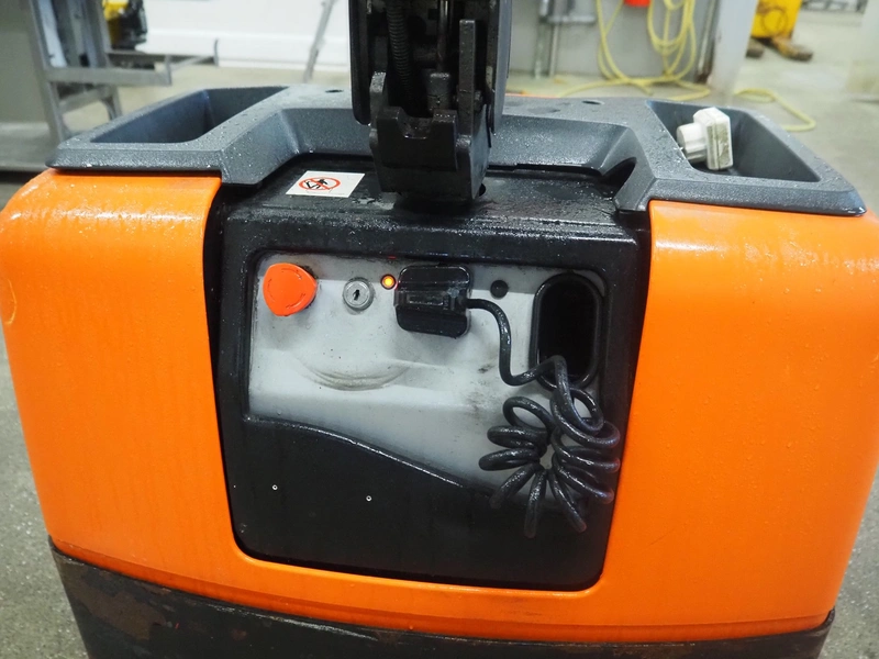 BT electrical pallet lifter, model: LWE130, number: 6005786, year of construction: 2007, capacity: 1300 kg, fork length: 1150 mm, total dimensions: 1600 mm x 700 mm x 1350 mm.