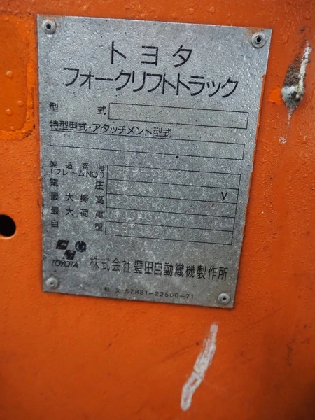 Toyota electrical forklift truck, capacity: 1200 kg, fork length: 920 mm, 24 V, total dimensions: 3000 mm x 870 mm x 2000 mm. Including battery charger.