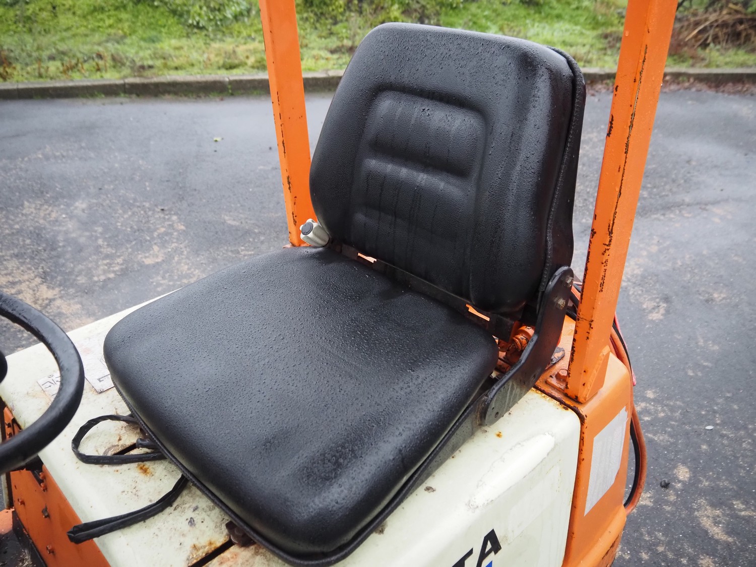 Toyota electrical forklift truck, capacity: 1200 kg, fork length: 920 mm, total dimensions: 3000 mm x 870 mm x 2000 mm. Including battery charger.