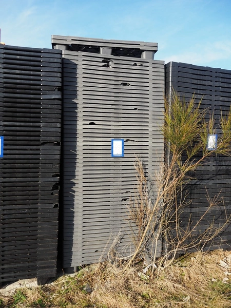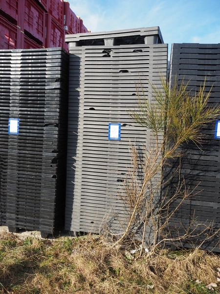 165 plastic stackable pallets, dimensions: (165x) 1200 mm x 1000 mm.