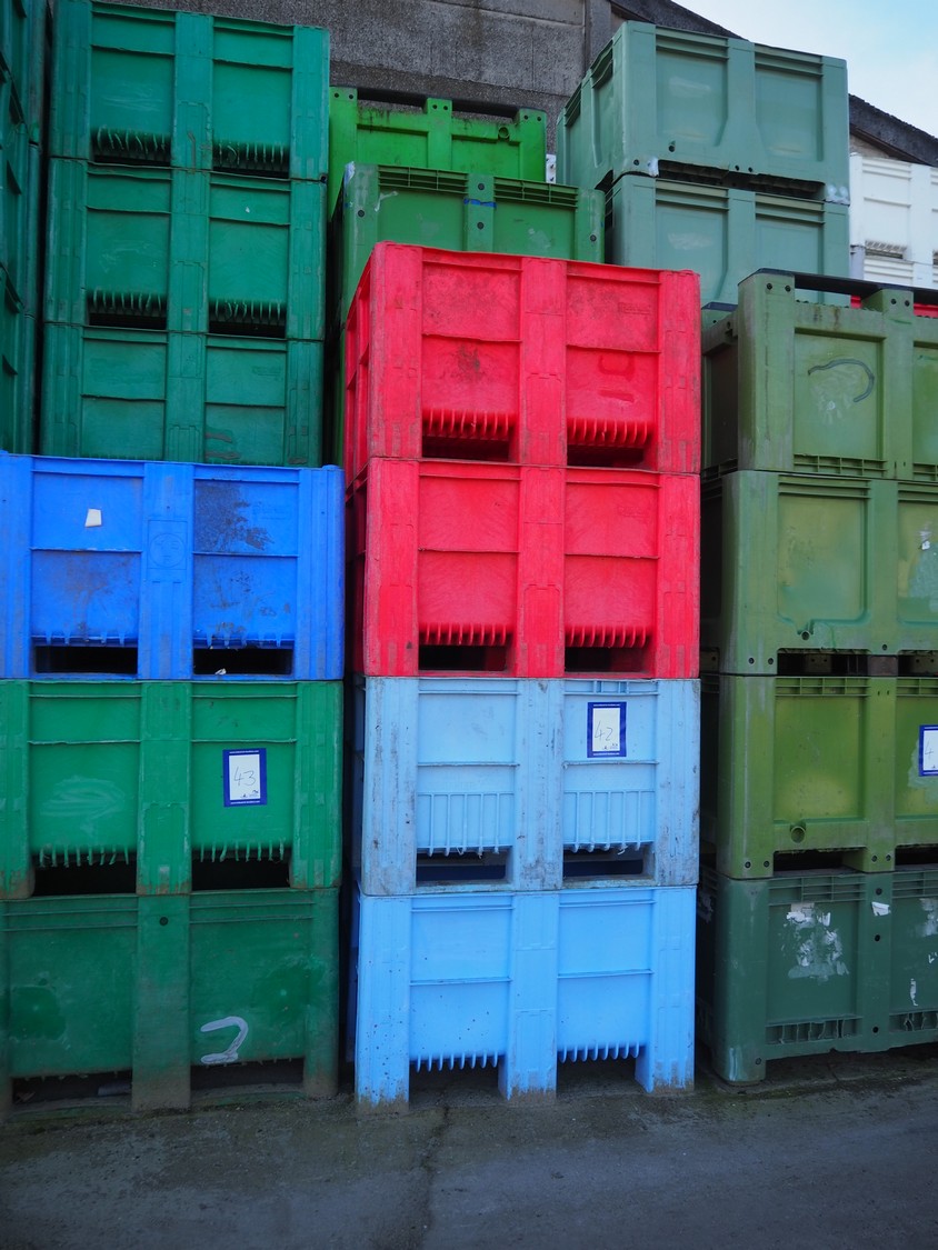 21 plastic pallet boxes, dimensions: (21x) 1200 mm x 1000 mm x 770 mm.