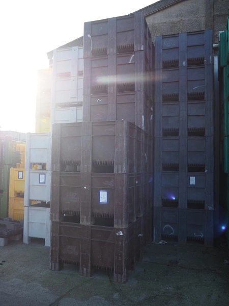 21 plastic pallet boxes, dimensions: (21x) 1170 mm x 990 mm x 720 mm.