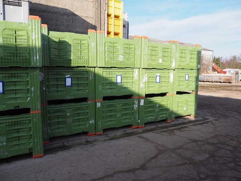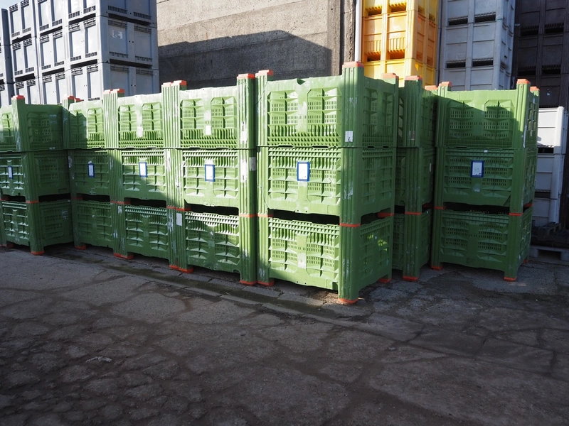 58 plastic pallet boxes, dimensions: (58x) 1200 mm x 1000 mm x 760 mm.