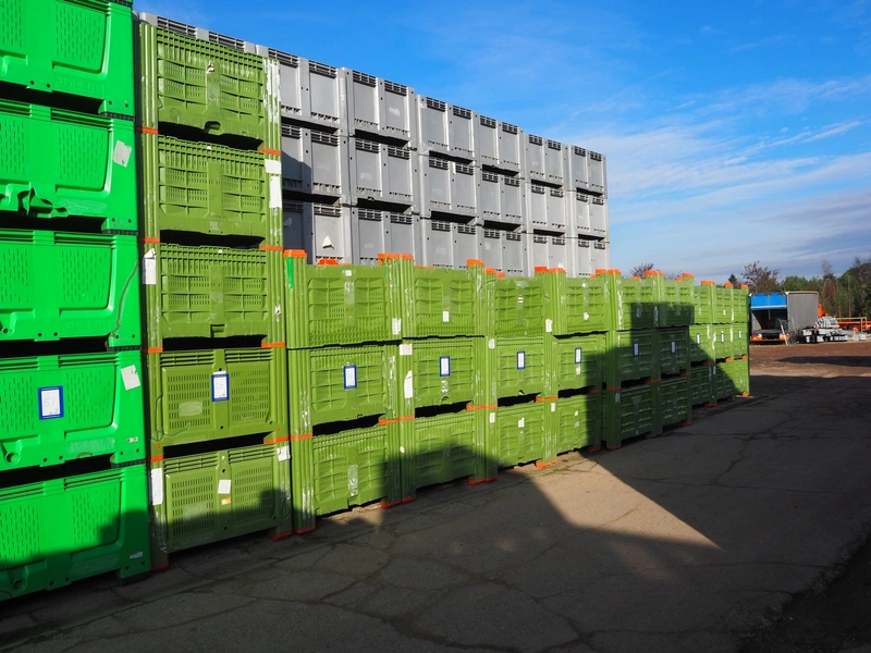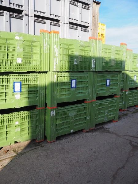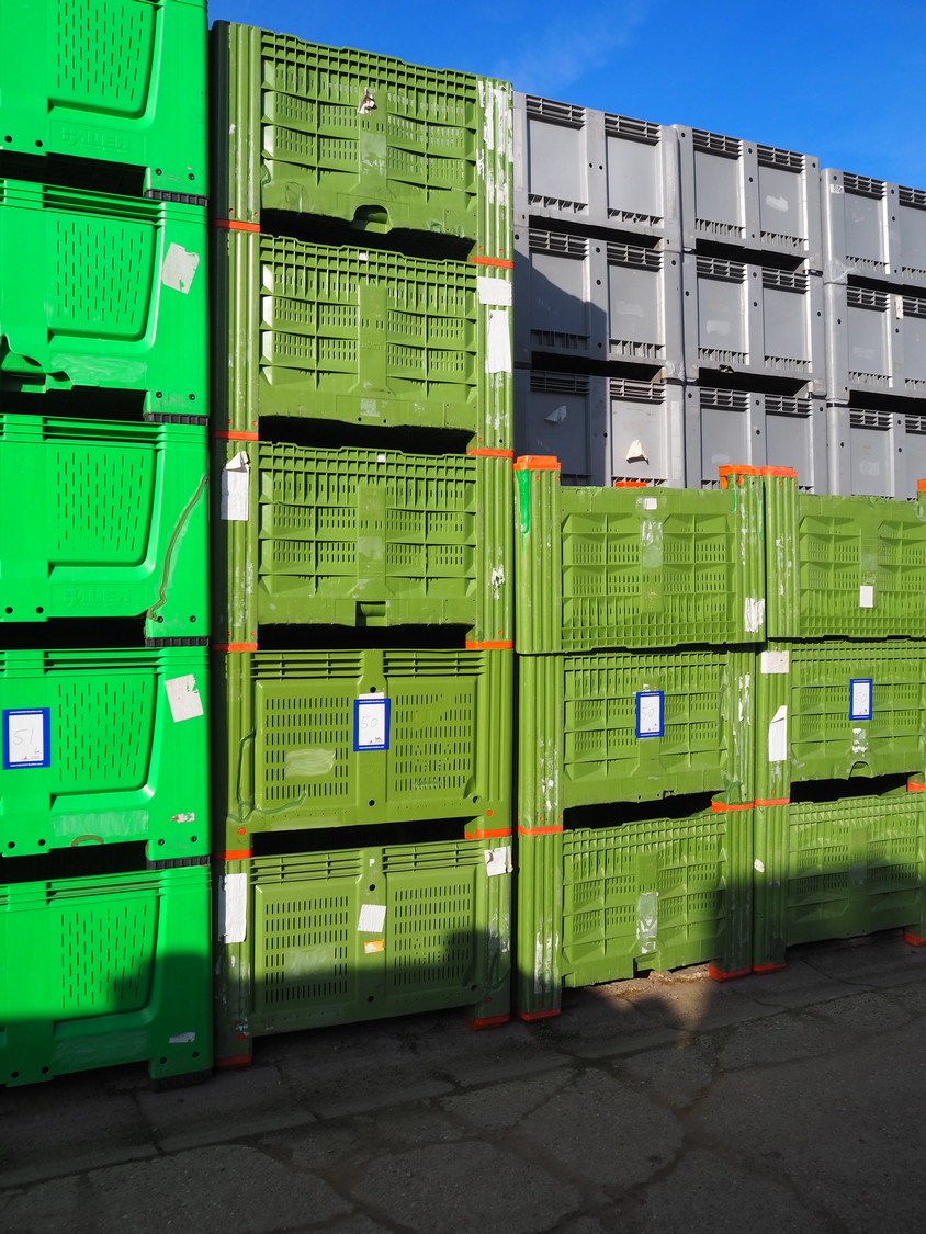 29 plastic pallet boxes, dimensions: (29x) 1200 mm x 1000 mm x 760 mm.