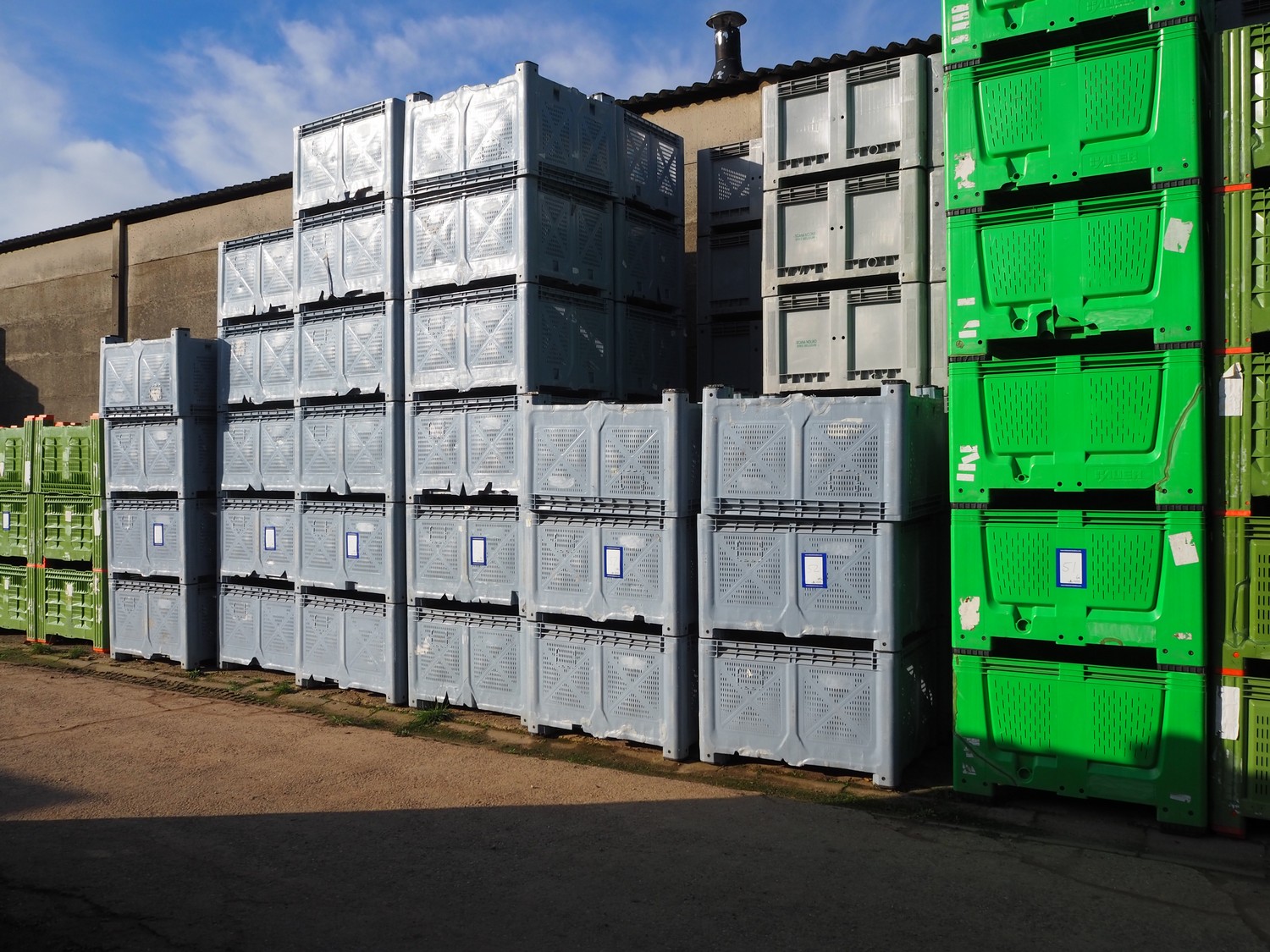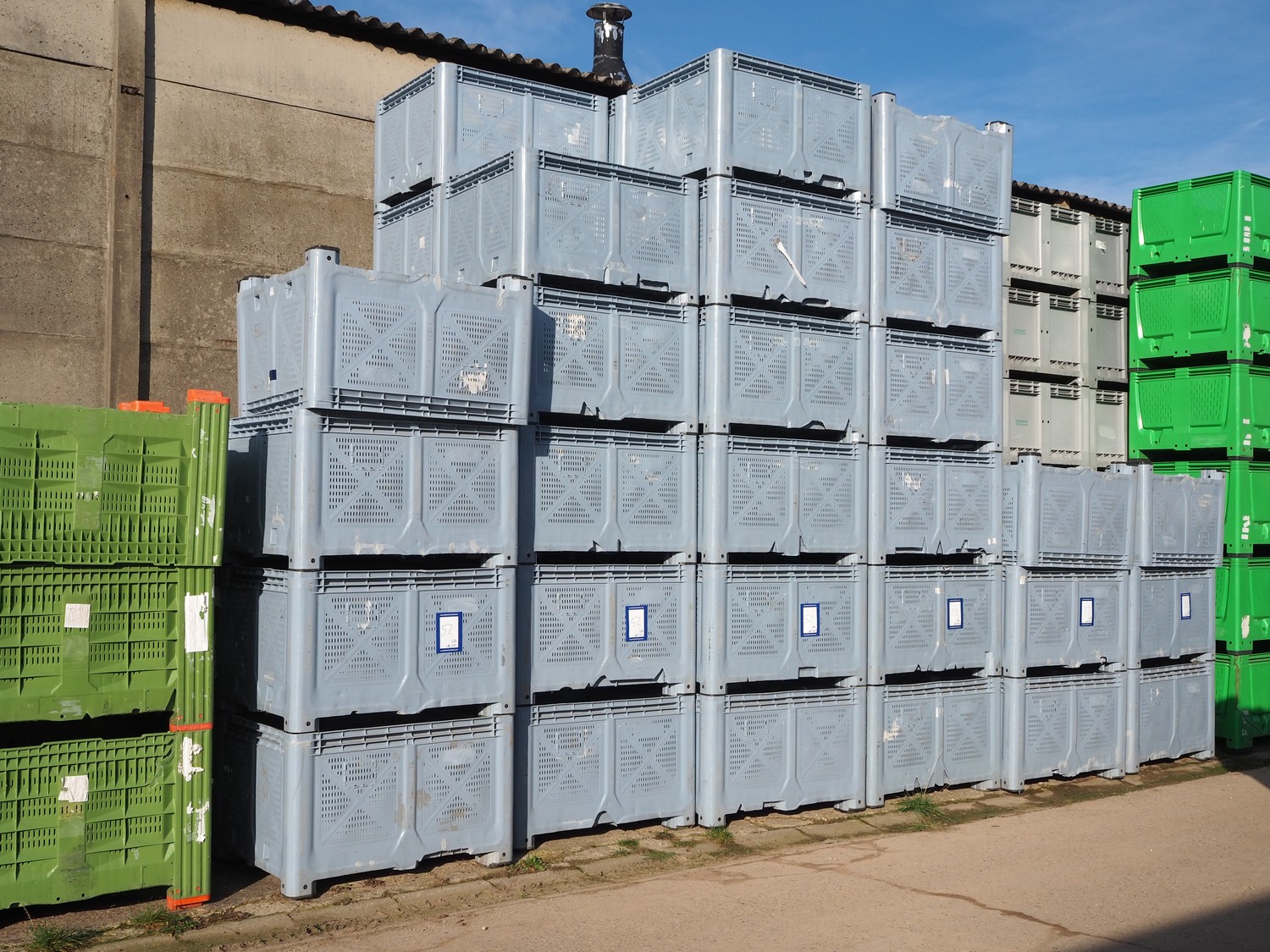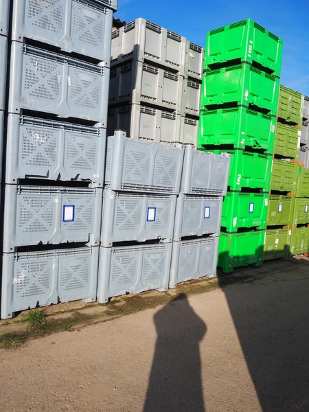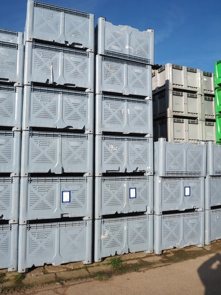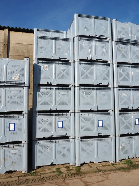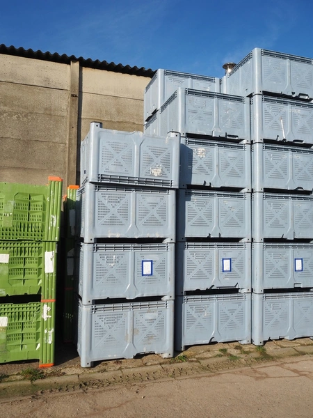 Approximately 51 plastic pallet boxes, dimensions: (51x) 1200 mm x 1000 mm x 760 mm.