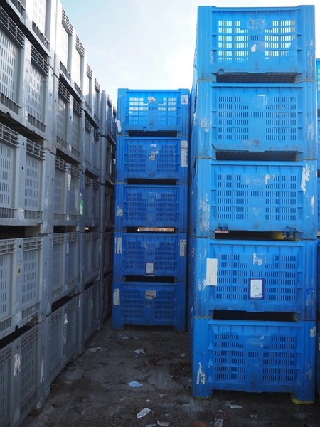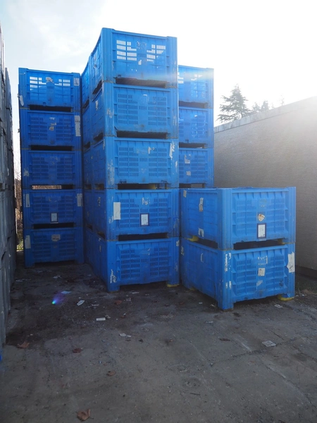64 plastic pallet boxes, dimensions (64x) 1120 mm x 1120 mm x 730 mm.