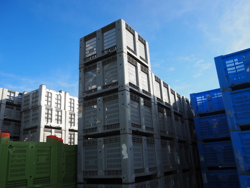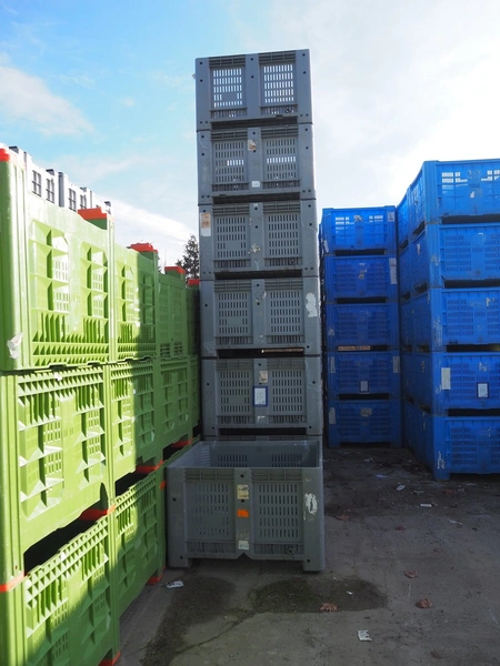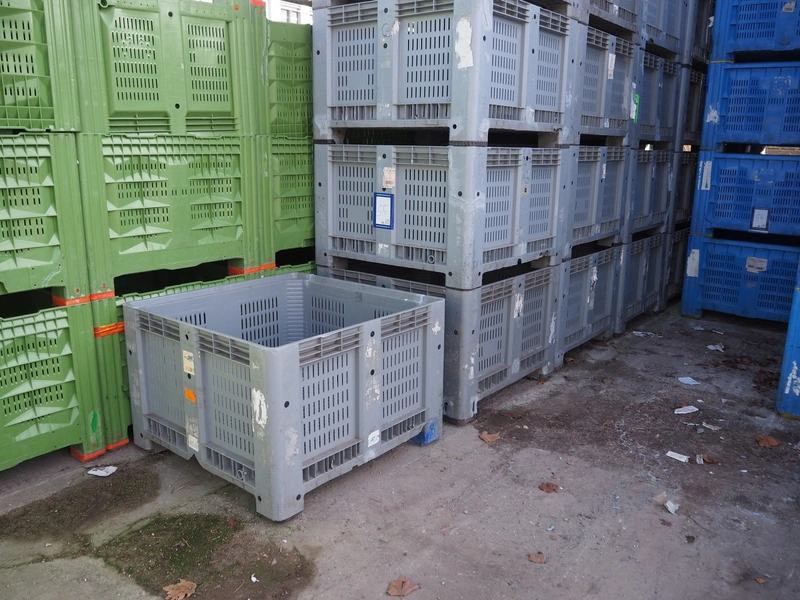 27 plastic pallet boxes, dimensions (27x) 1120 mm x 1120 mm x 750 mm.