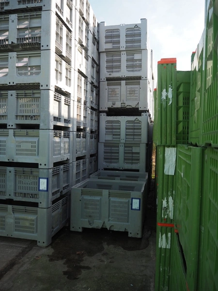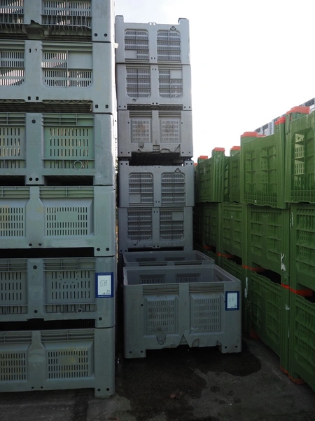 26 plastic pallet boxes, dimensions: (26x) 1180 mm x 990 mm x 750 mm.