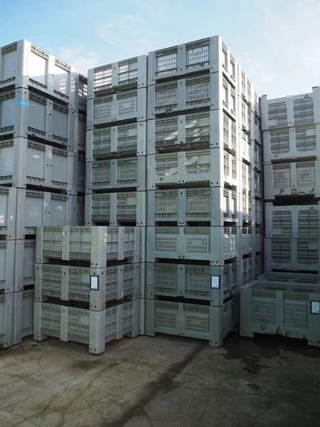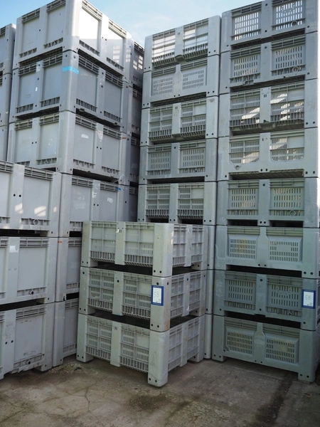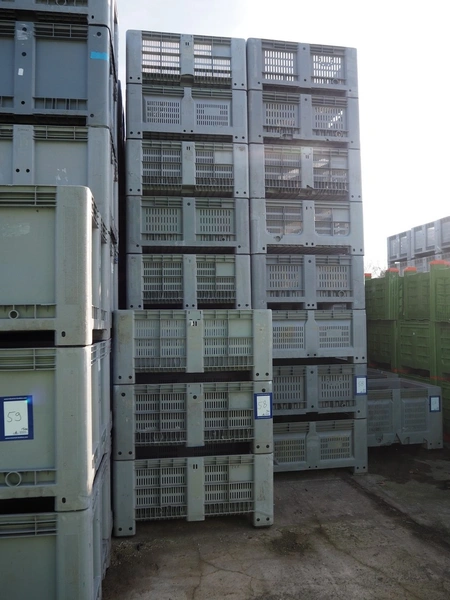 91 plastic pallet boxes, dimensions: (91x) 1200 mm x 1000 mm x 540 mm.