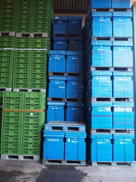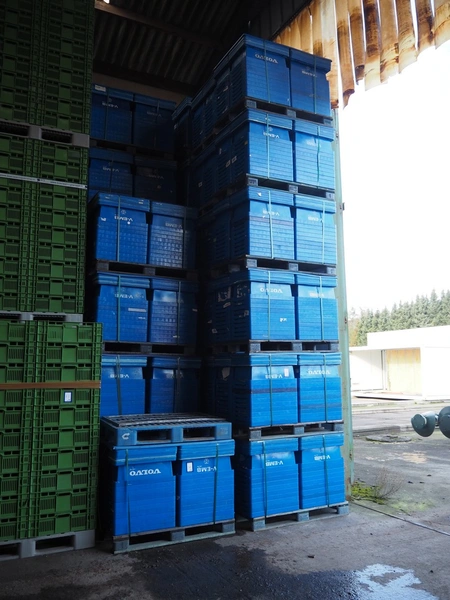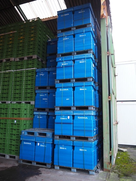 53 pallets with approximately 2120 plastic boxes with lid, box dimensions: 600 mm x 400 mm x 200 mm.