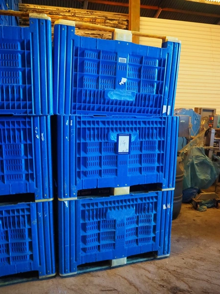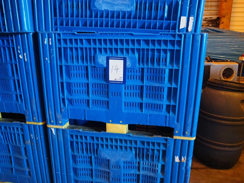 3 plastic pallet boxes, dimensions: (3x) 1190 mm x 990 mm x 760 mm.