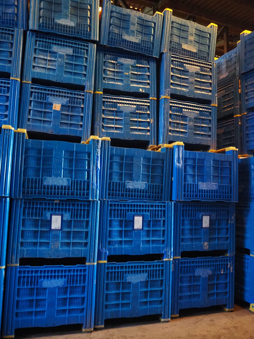 18 plastic pallet boxes, dimensions: (18x) 1190 mm x 990 mm x 760 mm.