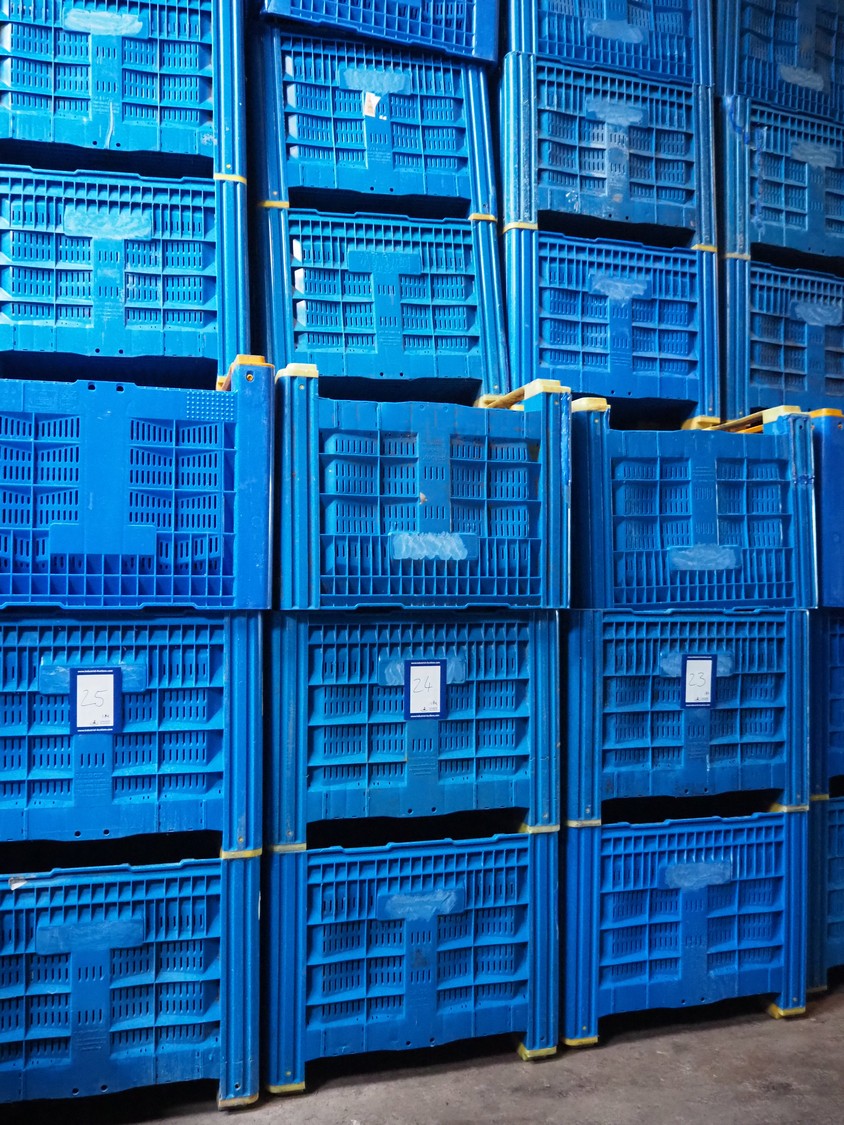 18 plastic pallet boxes, dimensions: (18x) 1190 mm x 990 mm x 760 mm.