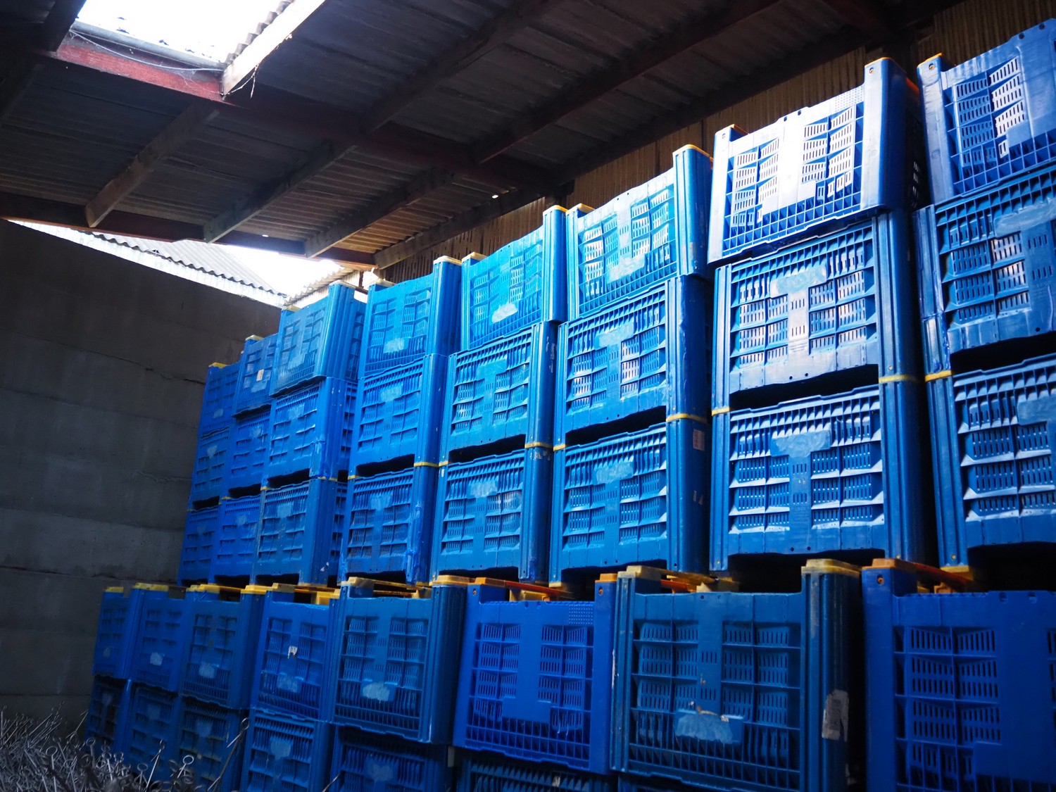 126 plastic pallet boxes, dimensions: (126x) 1190 mm x 990 mm x 760 mm.