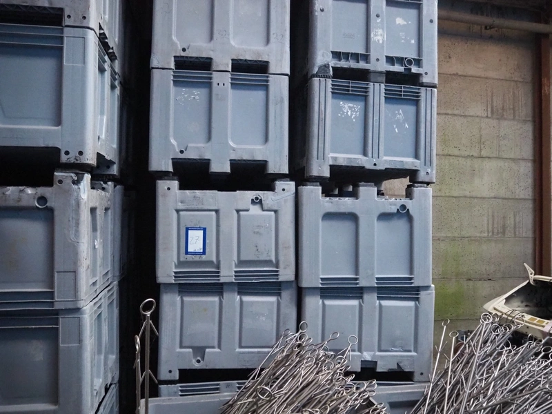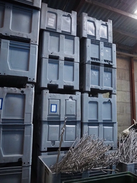 24 plastic pallet boxes, dimensions: (24x) 1190 mm x 990 mm x 710 mm.