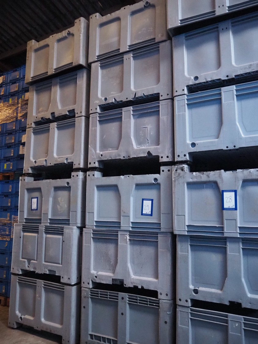 18 plastic pallet boxes, dimensions: (18x) 1190 mm x 990 mm x 710 mm.