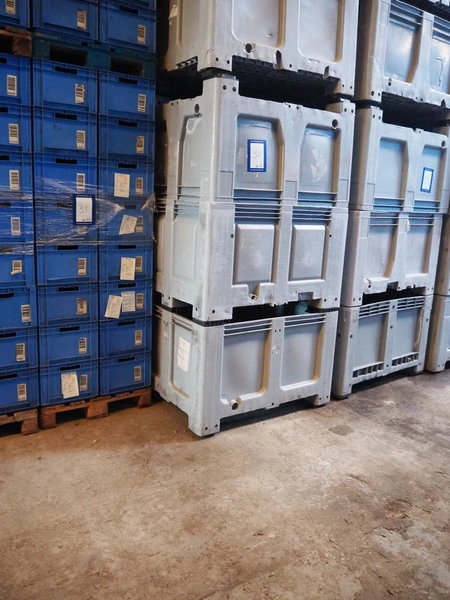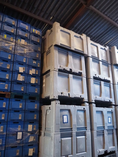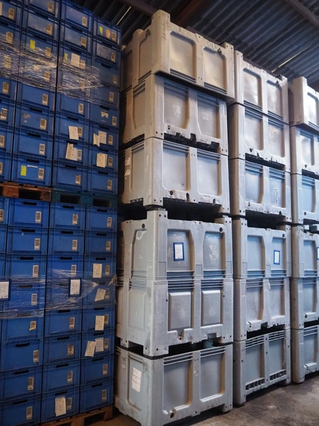 18 plastic pallet boxes, dimensions: (18x) 1190 mm x 990 mm x 710 mm.
