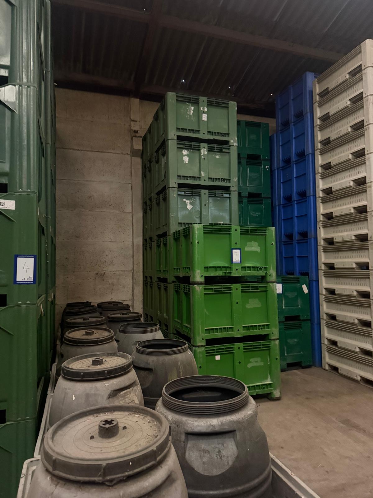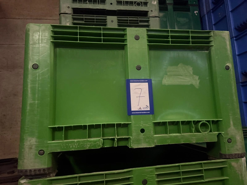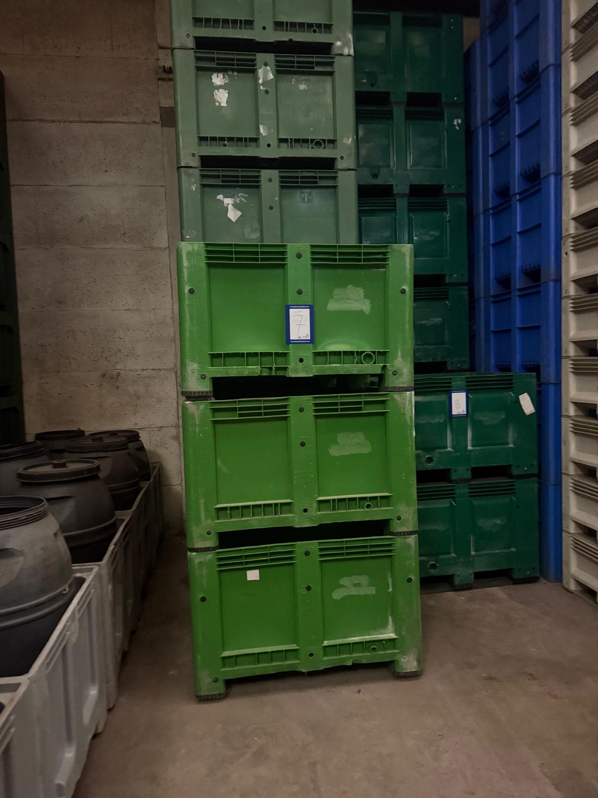 9 plastic pallet boxes, dimensions (9x) 1200 mm x 1000 mm x 740 mm.