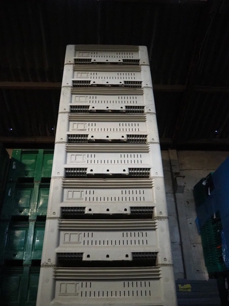 12 plastic pallet boxes, dimensions: (12x) 1140 mm x 1200 mm x 400 mm.