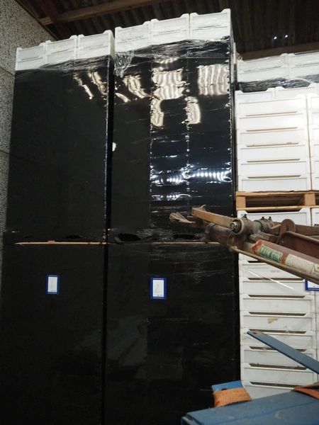 6 pallets with approximately 460 plastic crates, crate dimensions: 600 mm x 400 mm x 140 mm.