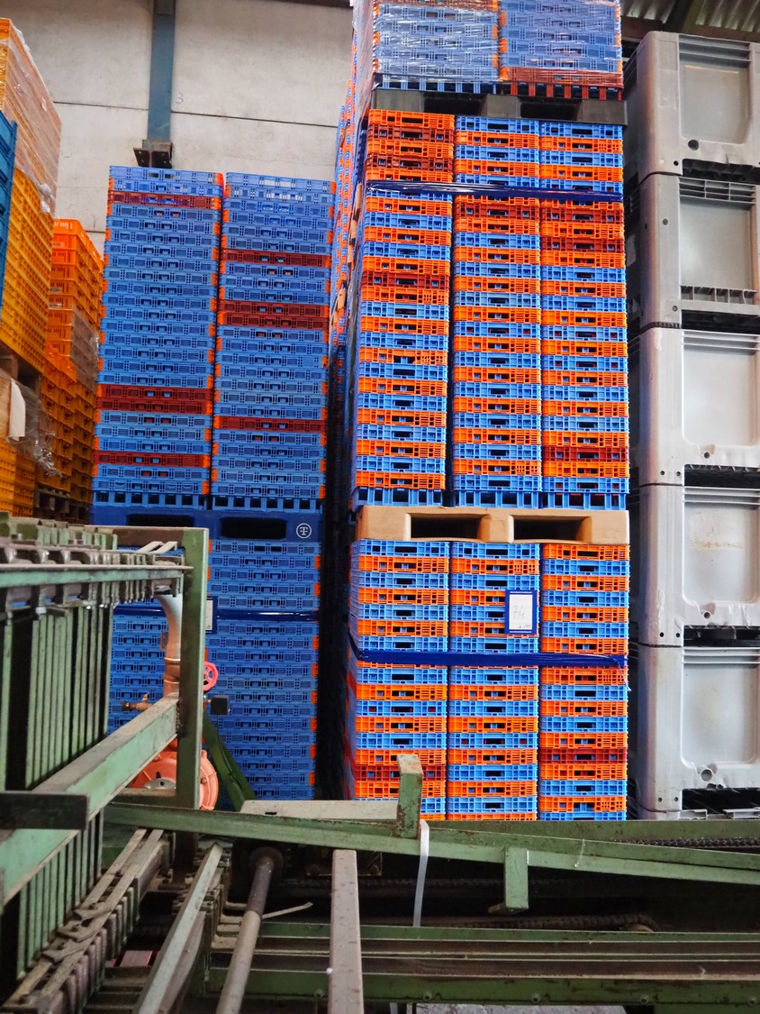 18 pallets with approximately 2250 plastic crates, crate dimensions: 600 mm x 400 mm x 150 mm.