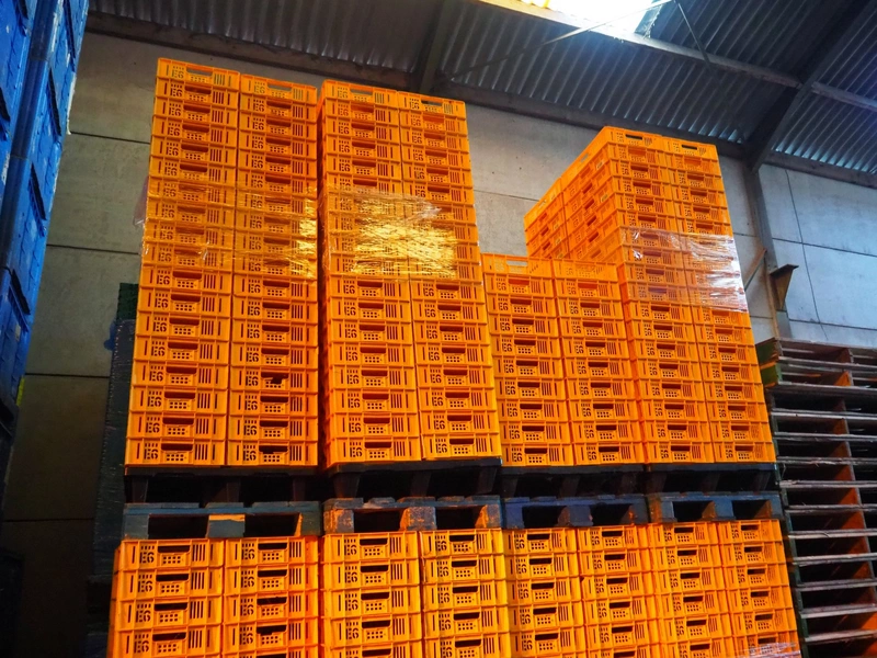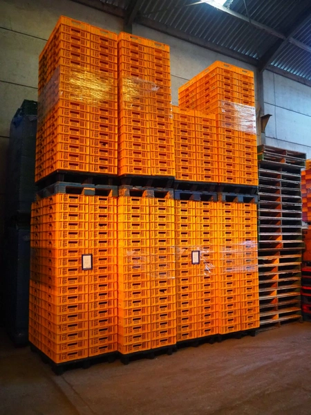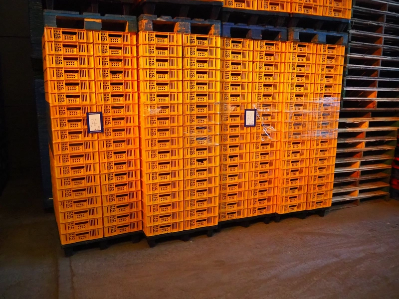 8 pallets with approximately 540 plastic crates, dimensions: 510 mm x 280 mm x 110 mm.