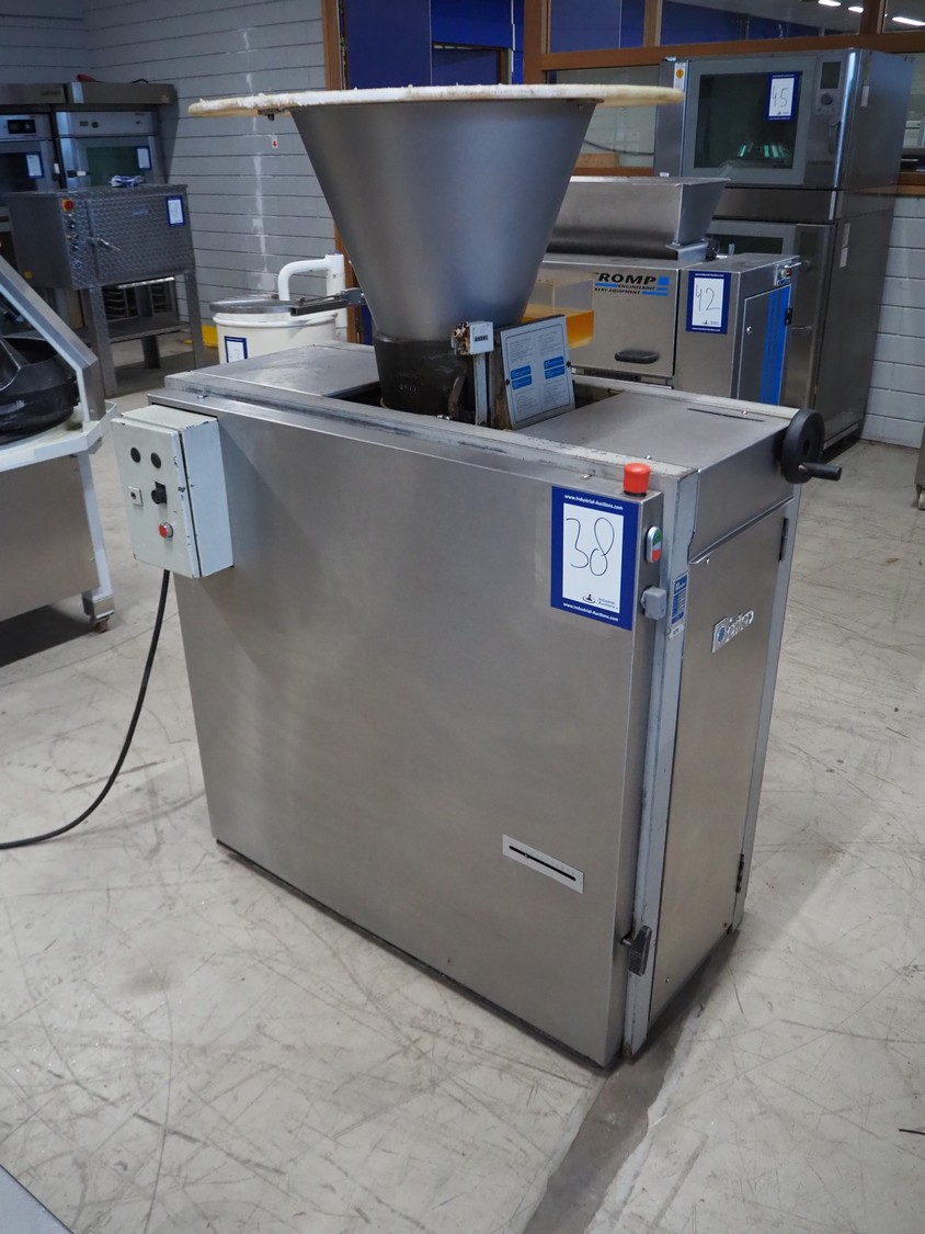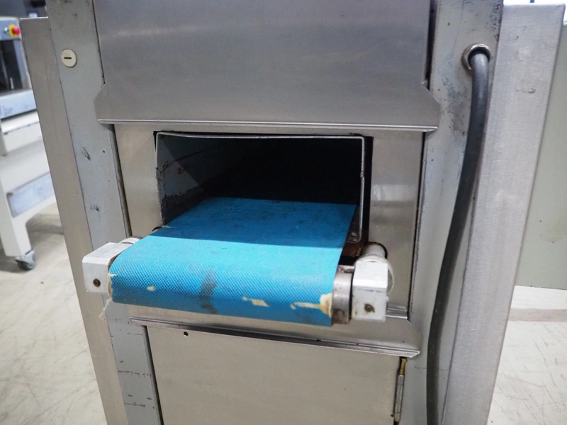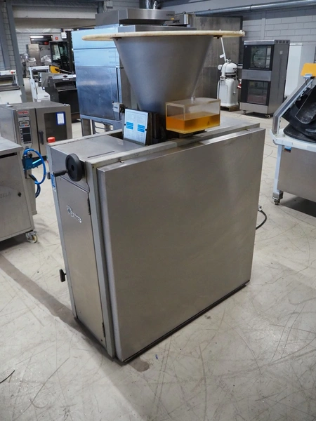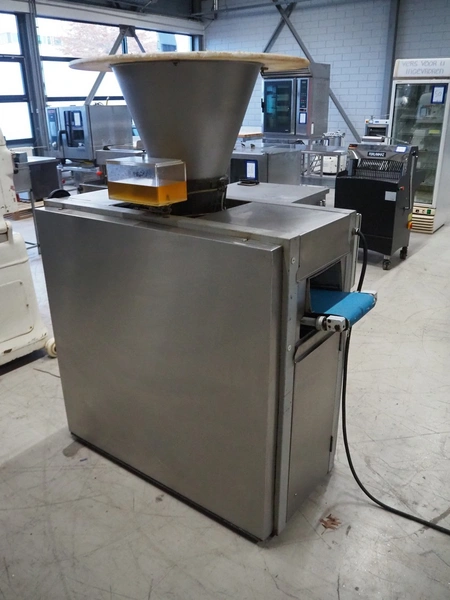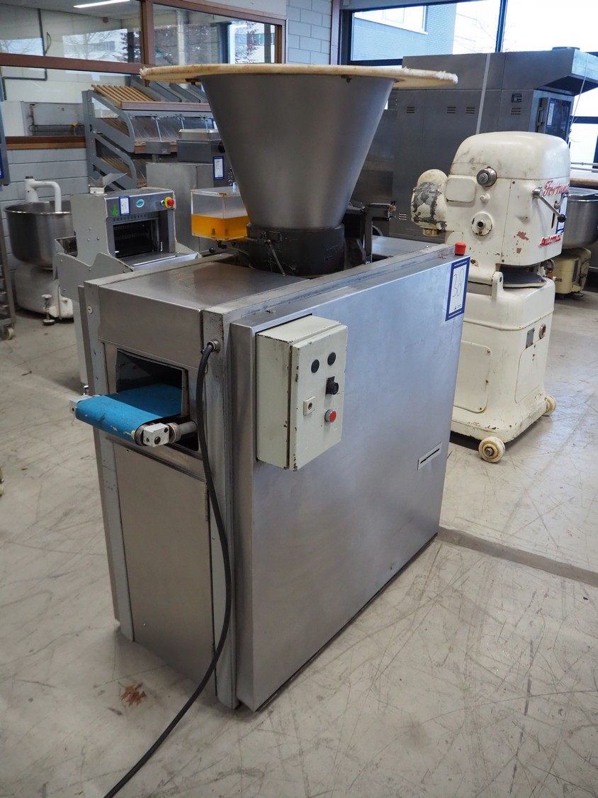 Benier dough divider, type: Afweger-B84, number: 20834A/801761, year of construction: 2002, 400 V, 3 Ph, 50 Hz, 4 A, plastic belt, belt width: 220 mm, total dimensions: 1450 mm x 720 mm x 1630 mm.