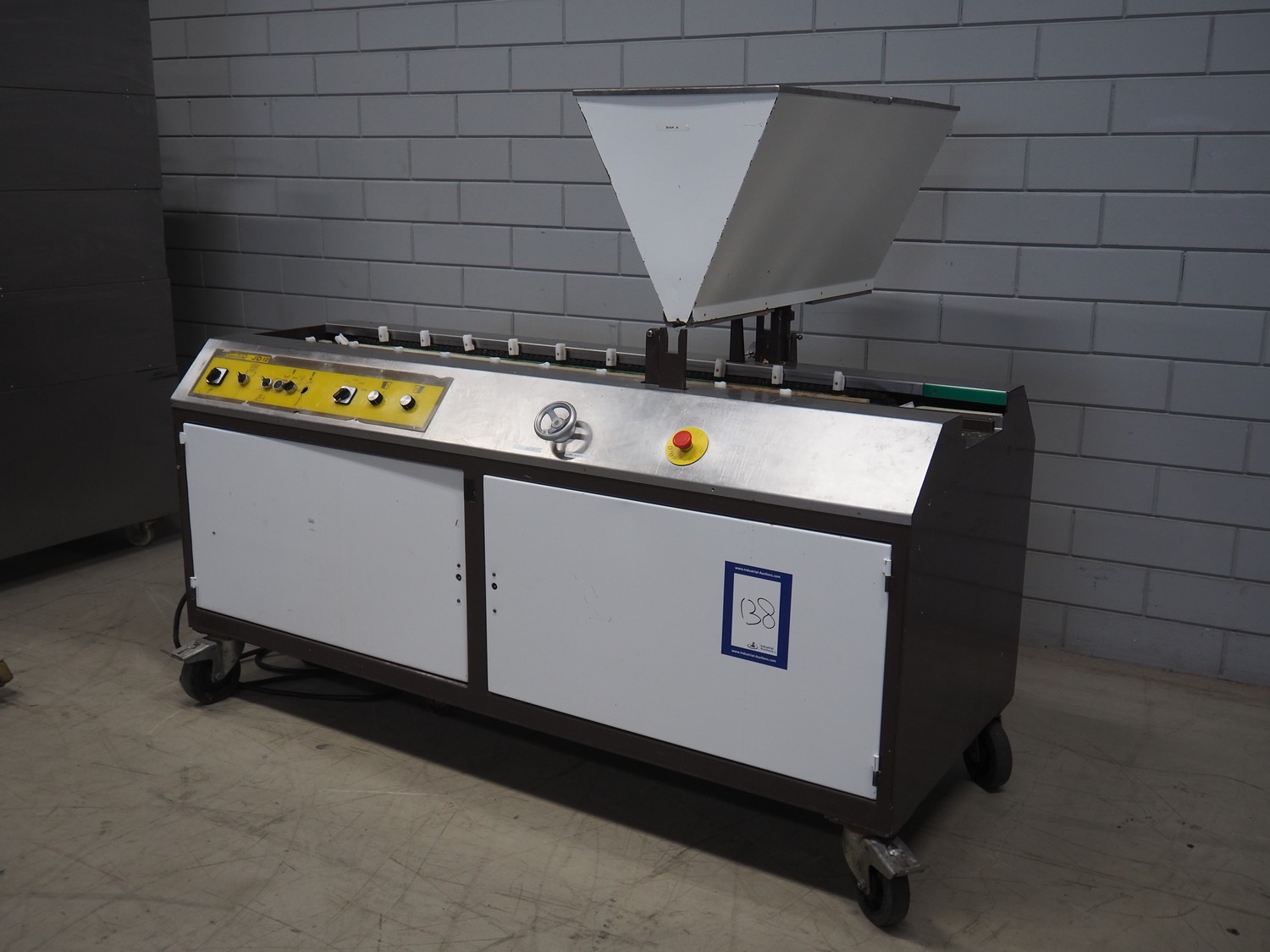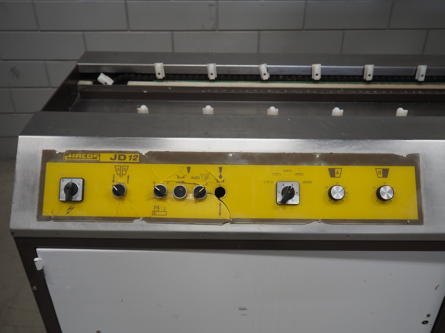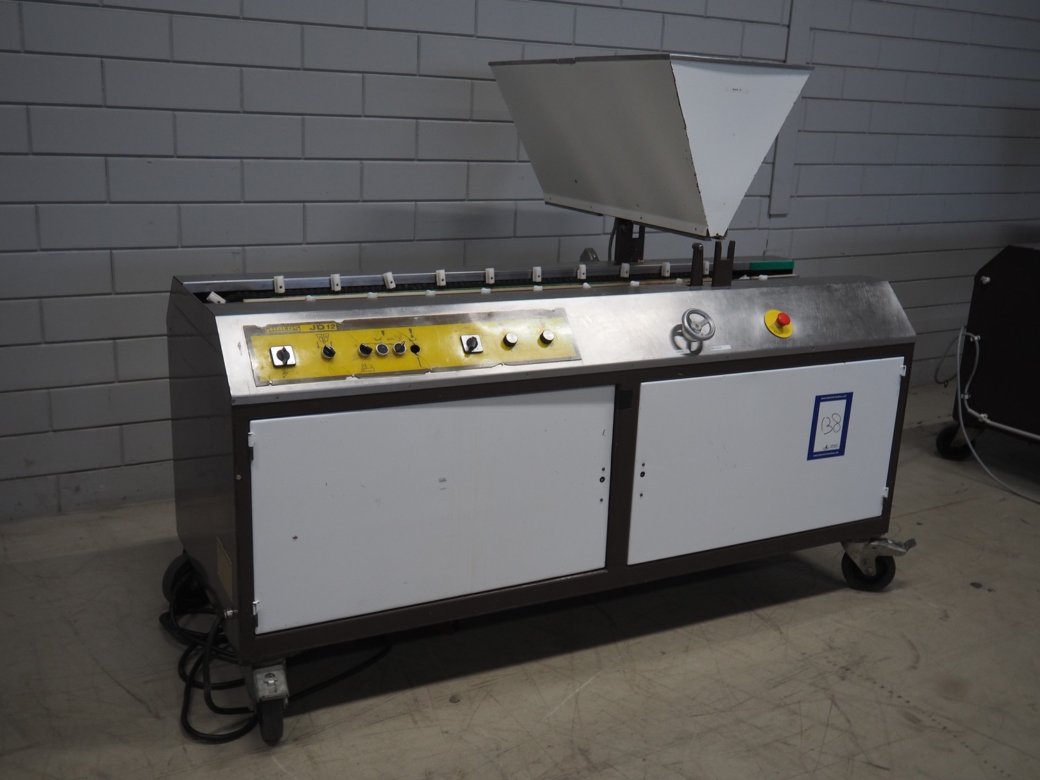 Hacos mobile filling machine, type: JD12, 8 filling heads, inside dimensions funnel: (2x) 450 mm x 430 mm x 450 mm, total dimensions: 2000 mm x 1000 mm x 1600 mm.