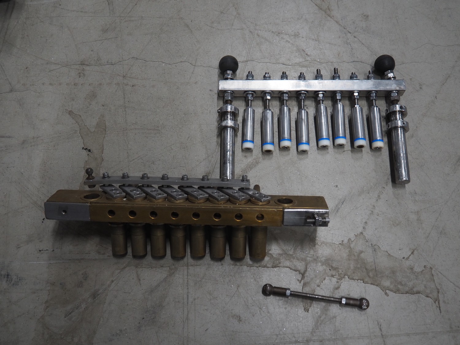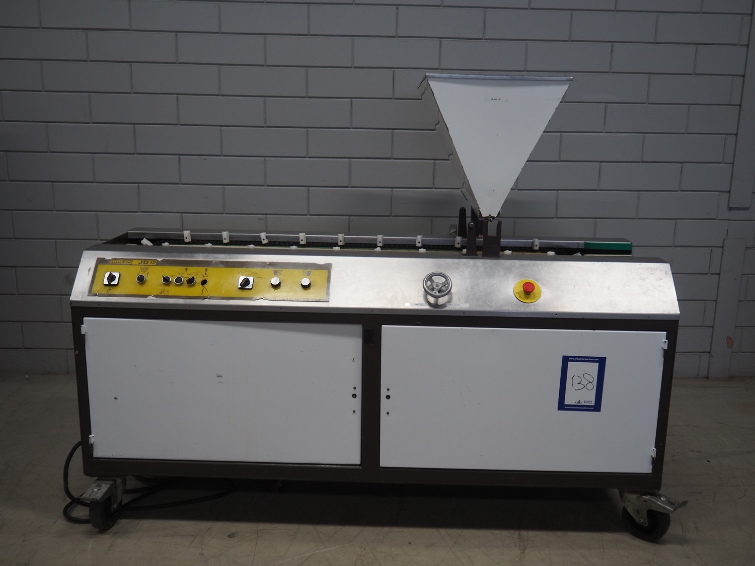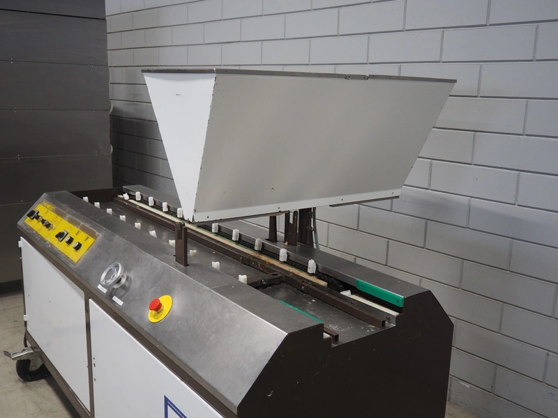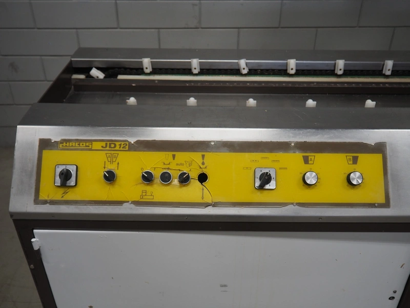 Hacos mobile filling machine, type: JD12, 8 filling heads, inside dimensions funnel: (2x) 450 mm x 430 mm x 450 mm, total dimensions: 2000 mm x 1000 mm x 1600 mm.